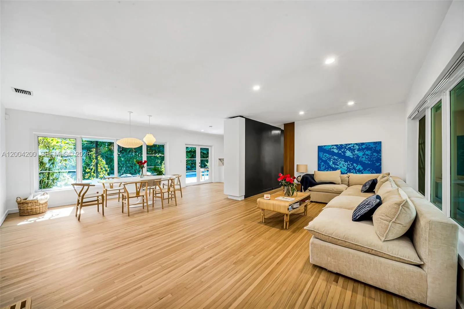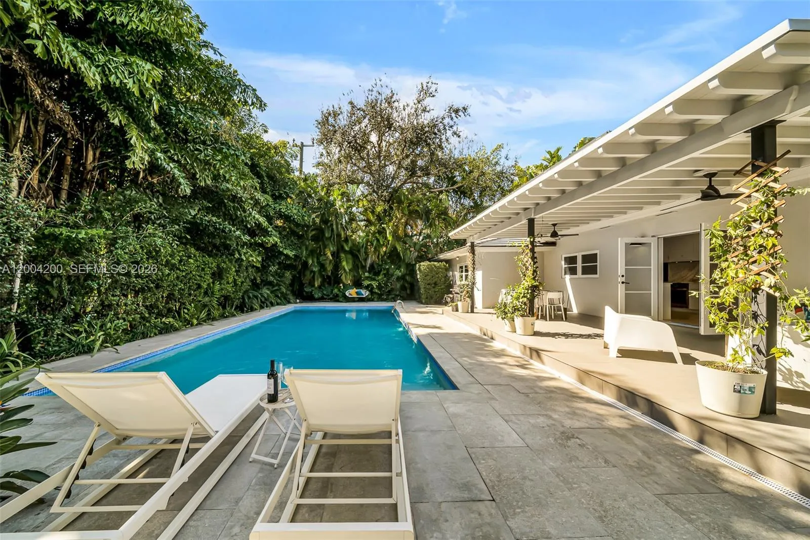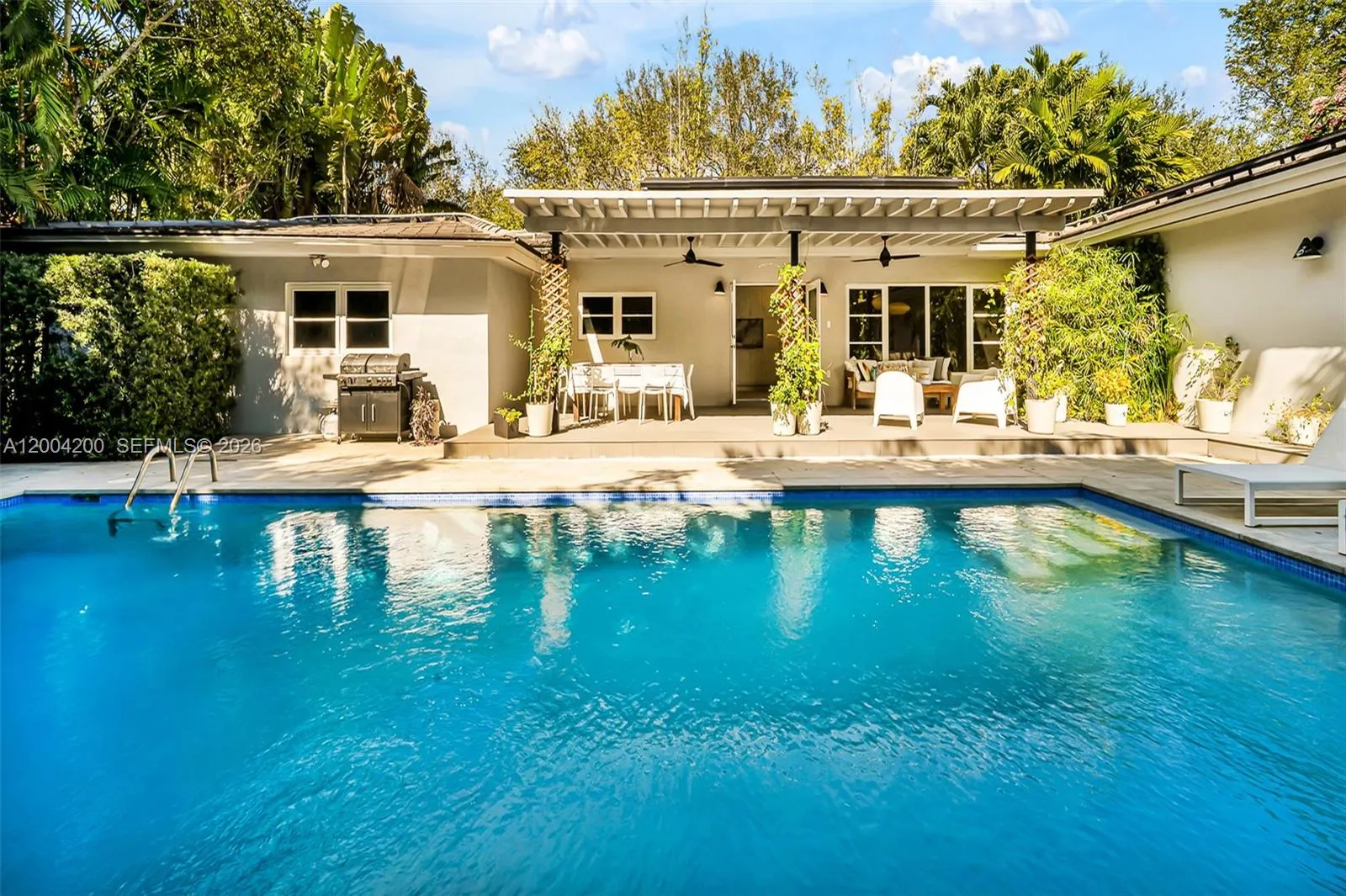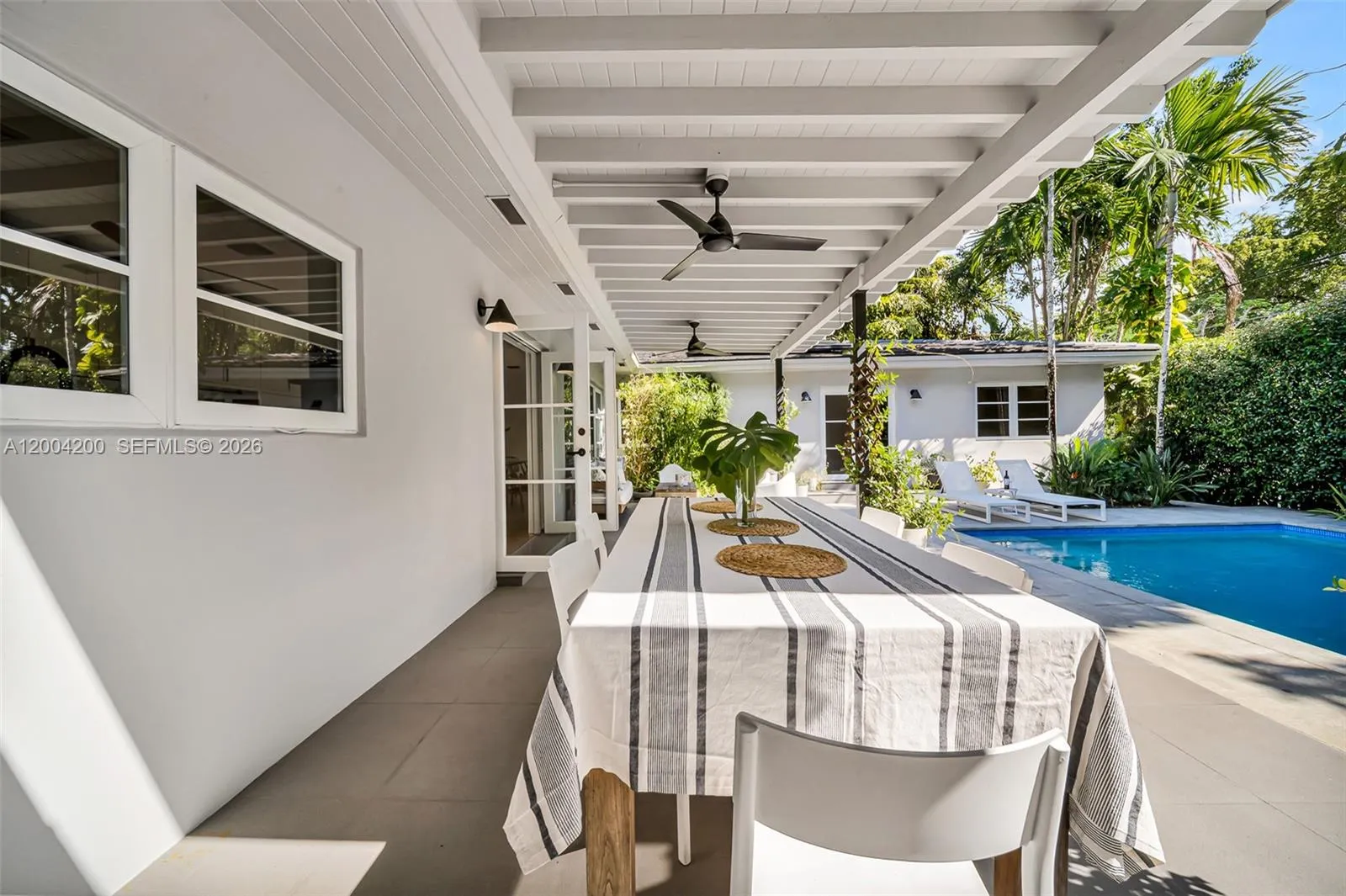 Beautifully renovated home nestled on a quiet, tree-lined street in the heart of the Coral Gables Riviera neighborhood. This spacious residence offers 4 bedrooms and 4 full bathrooms, with an open-concept kitchen and bright, airy living areas that flow seamlessly to a private outdoor retreat featuring a Heated Pool, ideal for entertaining or simply unwinding.rnEco-conscious living is made easy with solar panels that significantly reduce energy consumption and monthly utility costs. The home also features hurricane impact windows and doors, a covered 2-car parking area with additional guest parking, and a versatile office/den perfect for a home office, playroom, or guest space.rnA rare opportunity to lease a turnkey home that blends style, sustainability, and tranquility — all in one of Coral Gables’ most sought-after addresses. Available Furnished or Unfurnished.