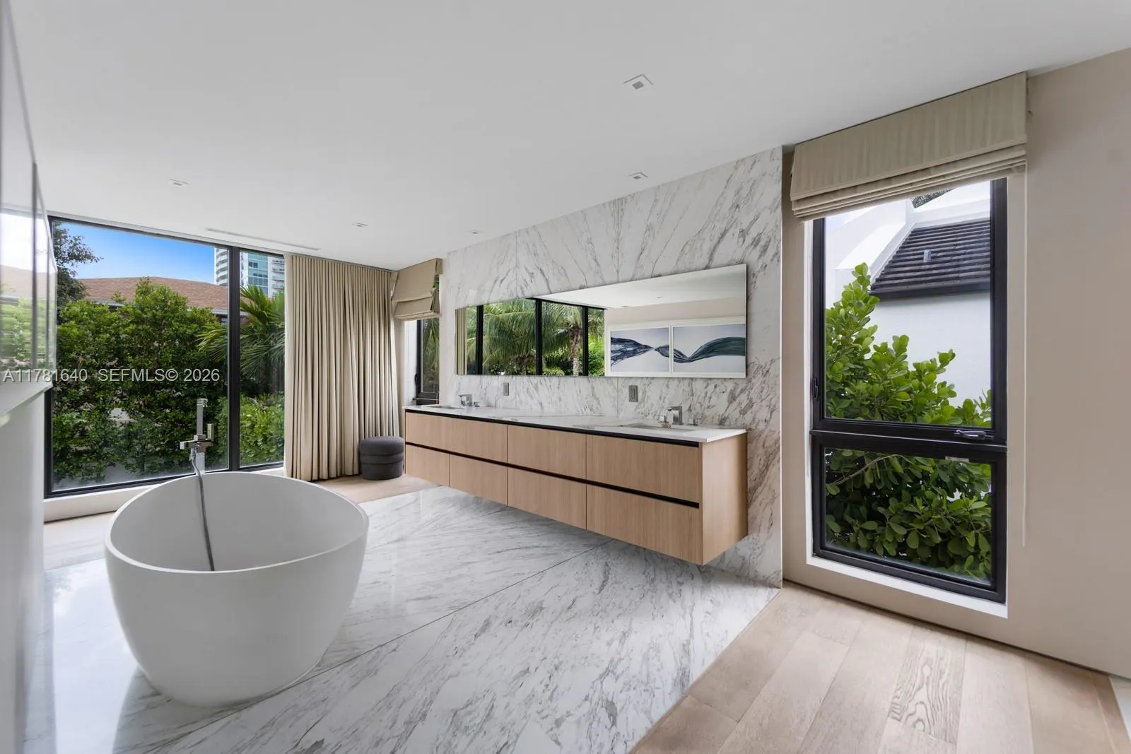 Behind a private gate, this modern home showcases a brand-new kitchen and a host of elegant updates throughout, complemented by high ceilings, a striking open balcony, and a thoughtfully designed main level with lavish tile and wood flooring. Upstairs, rich wood floors lead to ensuite bedrooms, including a lavish primary suite with oversized windows, a sprawling walk-in closet, dual vanities, and a spa-style tub and shower. Enjoy Jenn-Air and Thermador appliances, a gas range, Crestron automation, and Nest thermostat. The outdoor retreat features a heated pool, covered patio, gourmet summer kitchen, lush landscaping, and a gym/cabana. Plus, a 1-car garage and upstairs laundry offer added convenience. Just a 10-minute walk to all that Brickell Ave has to offer.