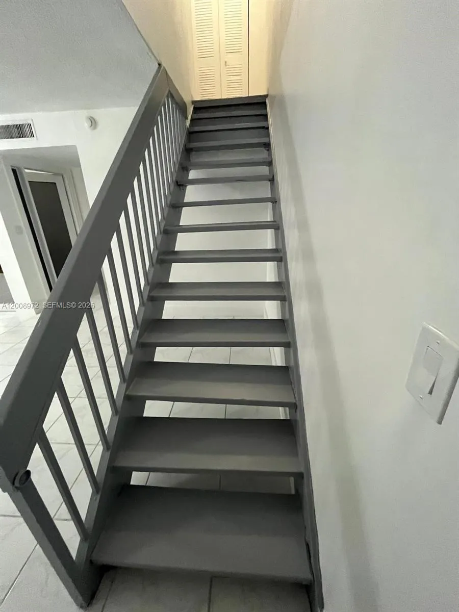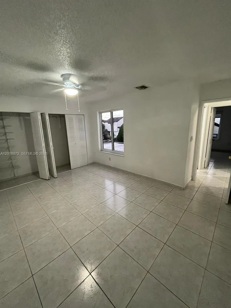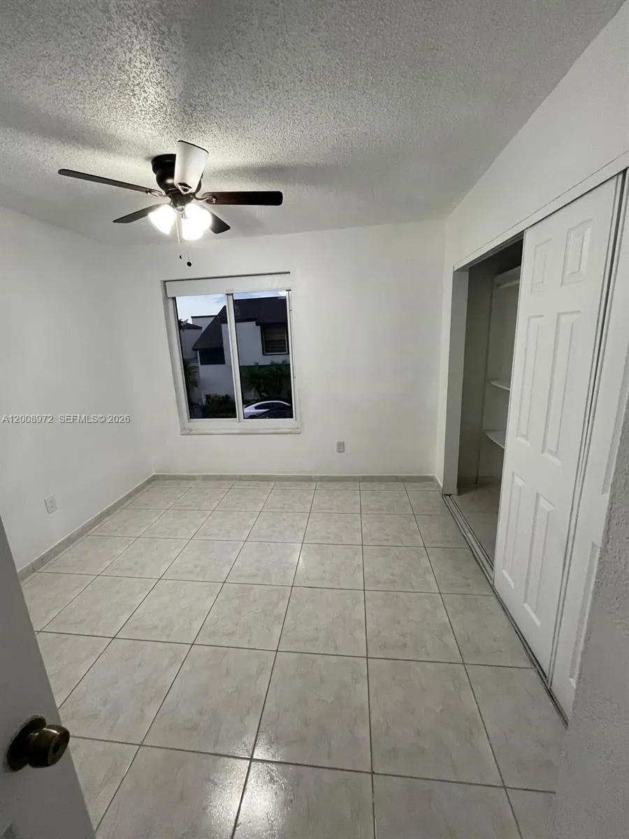 Spacious two-story condo/townhome in the desirable Fontainebleau area with 1,232 sq ft. This home offers 3 bedrooms and 2 full baths plus 1 half bath, a rear patio/porch, and two parking spaces (parking directly in front, plus guest parking available). Conveniently located near the 836, 826, and Florida’s Turnpike, and close to FIU and Doral. Features include two sliding doors, a utility/laundry room with washer/dryer hook-up (washer and dryer included), ample storage, textured walls, hurricane shutter panels, and an updated primary bedroom closet. One bedroom and a half bath are downstairs; upstairs you’ll find two bedrooms and one full bath. Recent updates include a new refrigerator, updated central A/C, and the unit is currently in the process of being painted. East Wind Lake Village Association amenities include pools (2), tennis courts, a clubhouse, picnic area, and a community lake; the community also has an underground electrical system. Vacant and easy to show. Conventional or cash offers only. Special assessment will be paid for by the owner at closing.