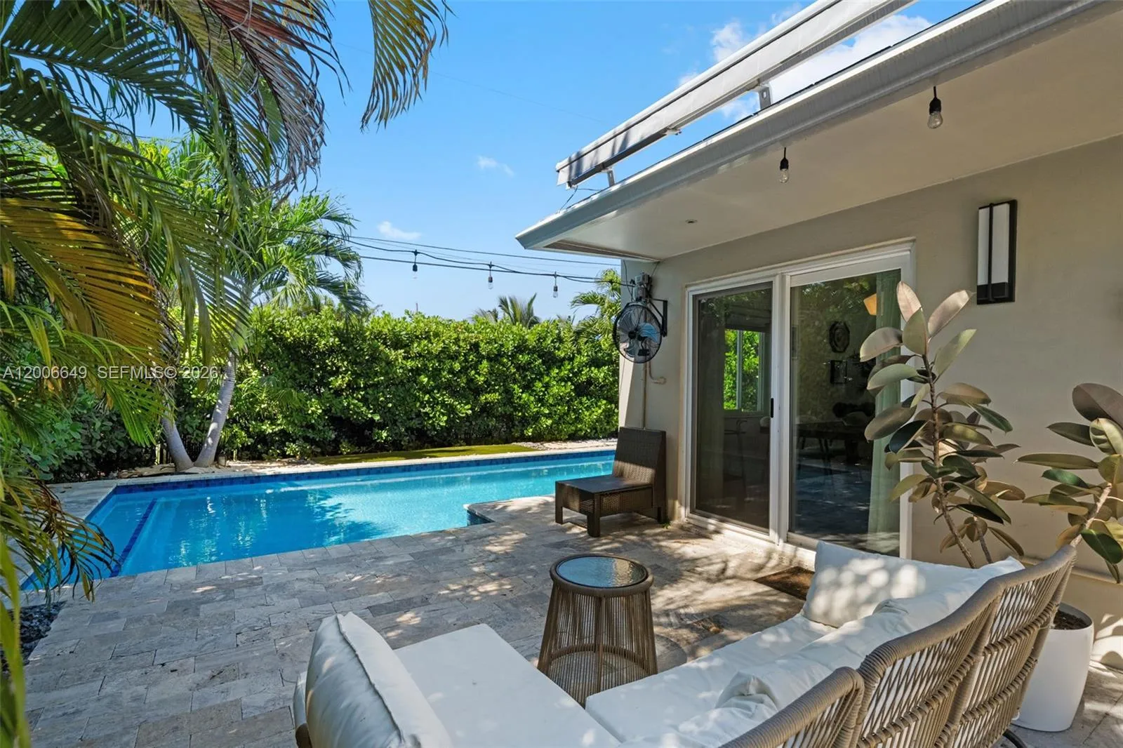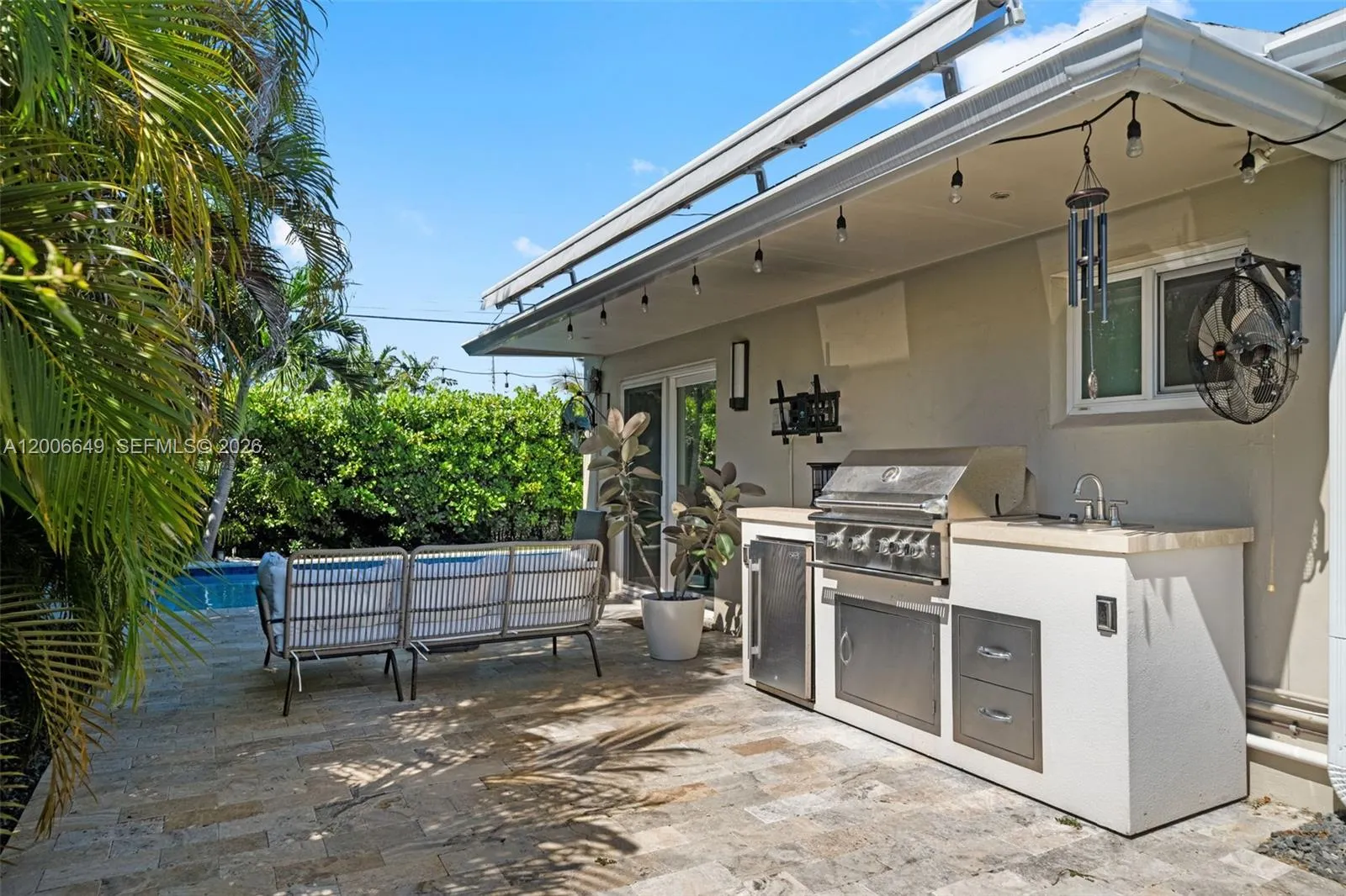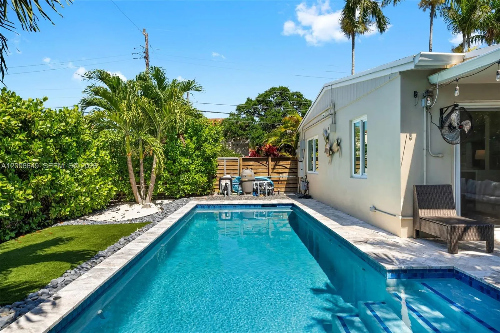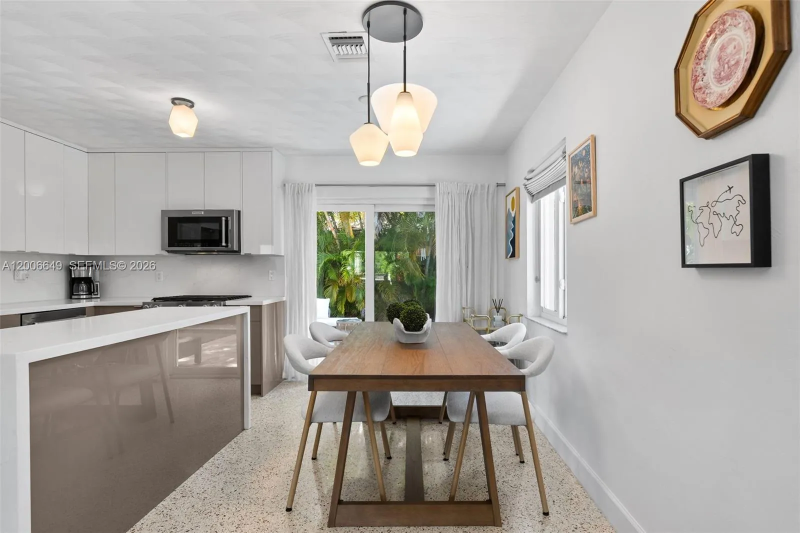 Experience timeless style and modern comfort in this beautifully maintained 3-bedroom, 3-bathroom pool home, ideally located just minutes from North Lake and the beach. Meticulously cared for and thoughtfully updated over the years, this residence features original terrazzo flooring and an open-concept layout designed for both everyday living and entertaining.rnThe updated kitchen offers elegant Italian two-tone cabinetry, striking waterfall countertops, and stainless steel appliances, seamlessly combining style and functionality. The well-designed floor plan includes two spacious primary en-suites, along with an additional guest bedroom and full bath, providing flexibility for hosting guests or accommodating extended stays.rnStep outside to a private tropical retreat featuring a beautifully designed pool, summer kitchen, outdoor television, lush landscaping, and a shaded canopy—perfect for outdoor entertaining and enjoying the Florida lifestyle year-round.