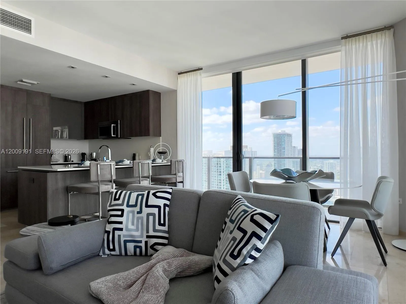 Seller Financing Available. Experience elevated living in this impeccably furnished 1,265 sq ft corner residence at Reach, Brickell City Centre. Designed by one of Miami’s premier interior design firms, this high-floor unit showcases sweeping city views, elegant marble floors, floor-to-ceiling glass, and a spacious wraparound terrace. The modern kitchen features sleek Italkraft cabinetry, premium Bosch appliances, and quartz countertops, blending style and functionality. Residents enjoy world-class amenities including a full-service spa, heated lap and social pools, a state-of-the-art fitness center, and direct access to Brickell’s top-tier shopping and dining.