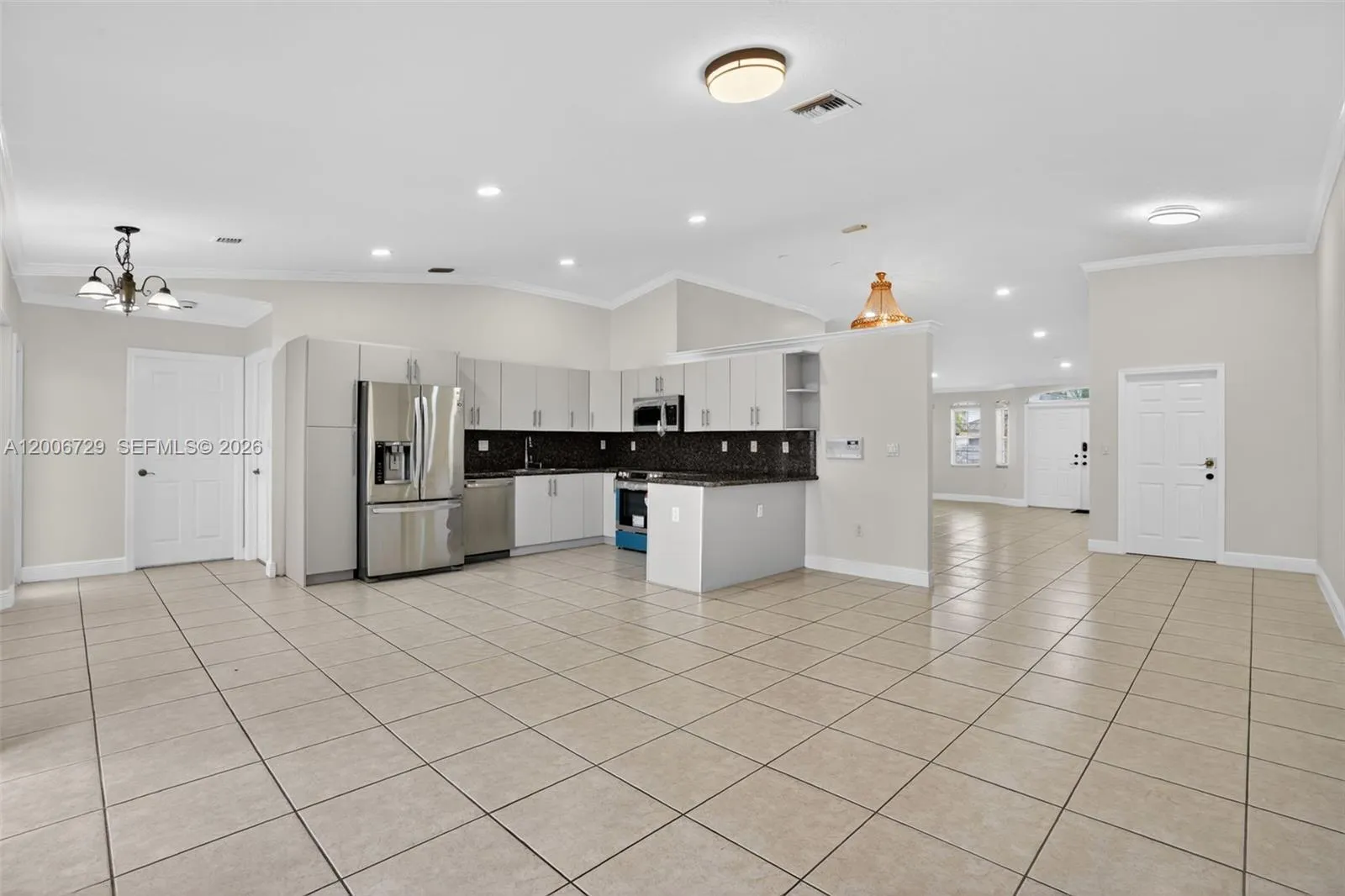 Beautiful one-story single-family home located in the heart of Miami with no HOA. This spacious residence offers 4 bedrooms, 3 full bathrooms, and over 2,500 square feet of living space, featuring vaulted ceilings and a bright, open layout.rnThe home boasts a newly renovated kitchen with granite countertops and brand-new stainless steel energy-efficient appliances. Porcelain flooring runs throughout all bedrooms, complemented by modern LED lighting for a sleek and efficient finish.rnDesigned for both comfort and entertaining, the property includes generous living and dining areas, along with a cozy family room perfect for everyday living. A two-car garage and circular driveway provide ample parking space.rnThe fully paved backyard offers plenty of room for relaxing or hosting gatherings, creating a low-maintenance outdoor retreat.rnConveniently located near major highways, shopping centers, top-rated schools, and parks, this move-in-ready home combines comfort, style, and accessibility.