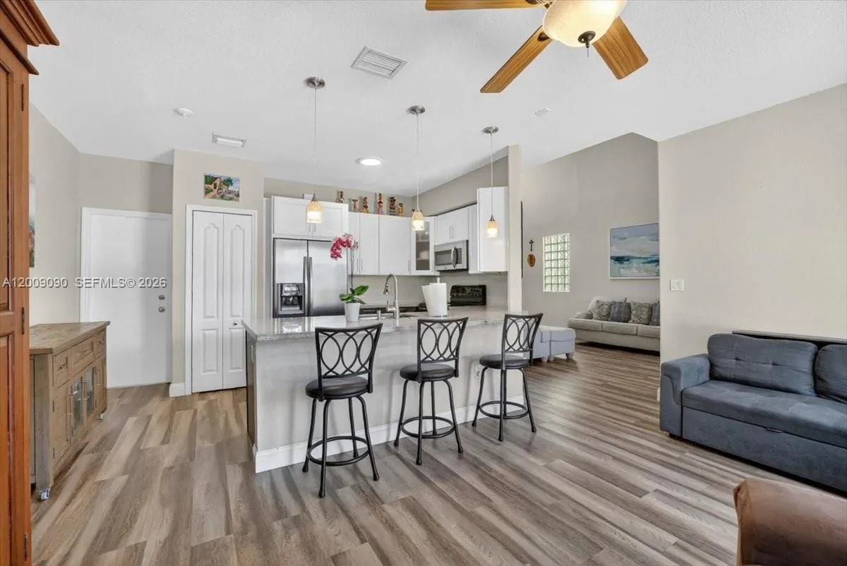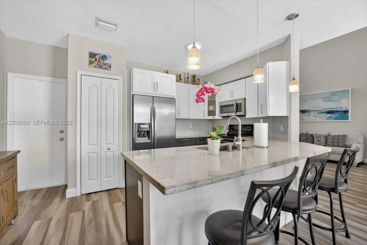 The best value in guard-gated Nautica. This updated 3-bed, 2.5-bath townhome with a 2-car garage offers nearly 1,900 square feet of move-in-ready living space. The first floor has been thoughtfully refreshed with brand new vinyl flooring throughout, including the staircase, plus a fully remodeled kitchen built for both everyday living and entertaining. The open layout flows from the kitchen into the dining and living areas and out to a private fenced backyard with sprinklers ideal for relaxing, hosting, or letting the kids and pets enjoy the outdoors.rnUpstairs, the spacious primary suite features double vanities and a walk-in closet, with two additional bedrooms offering flexibility for family, guests, or a home office. A second bedroom is connected by an ensuite bath — a functional layout perk that’s hard to find at this price point in Nautica.rnNautica is one of Miramar’s most established 24/7 guard-gated communities, offering resort-style amenities including a community pool, fitness center, clubhouse, tennis and basketball courts, a child play area, and scenic jogging paths. Zoned for highly regarded Dolphin Bay Elementary, Glades Middle, and Everglades High. Quick access to I-75, Miramar Regional Park, Memorial Hospital Miramar, top shopping and dining, and just minutes to both Fort Lauderdale and Miami International Airports.rnPet-friendly community, leasing permitted per HOA guidelines. Schedule your showing before it’s gone.