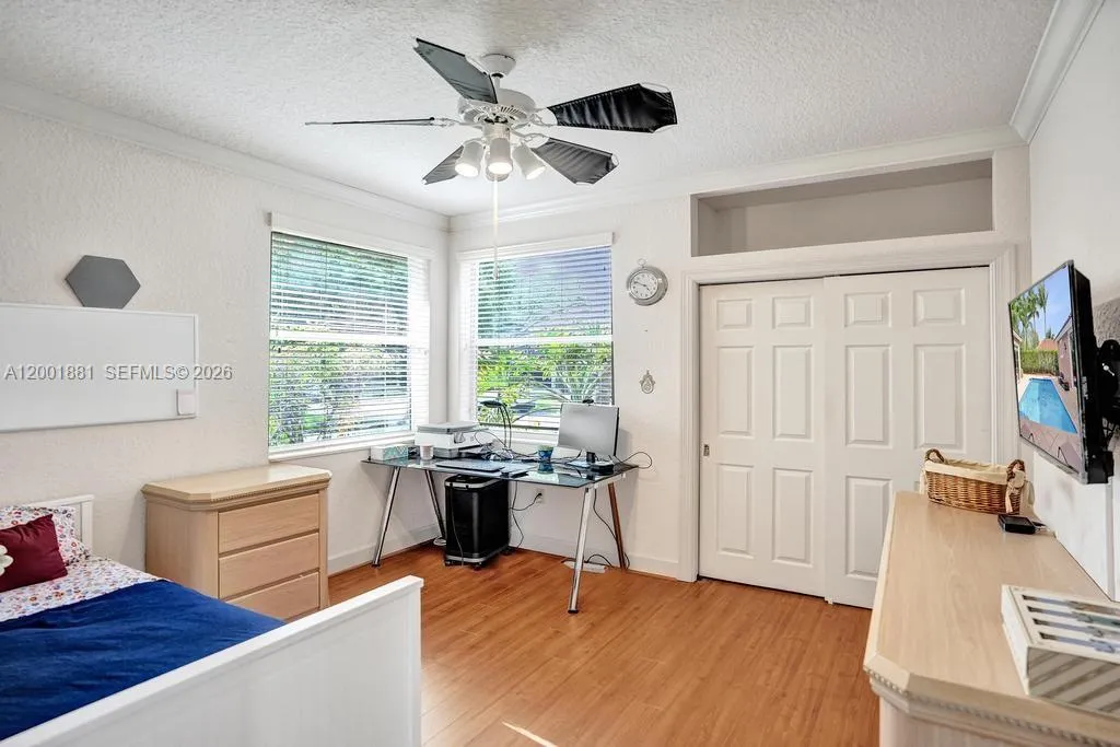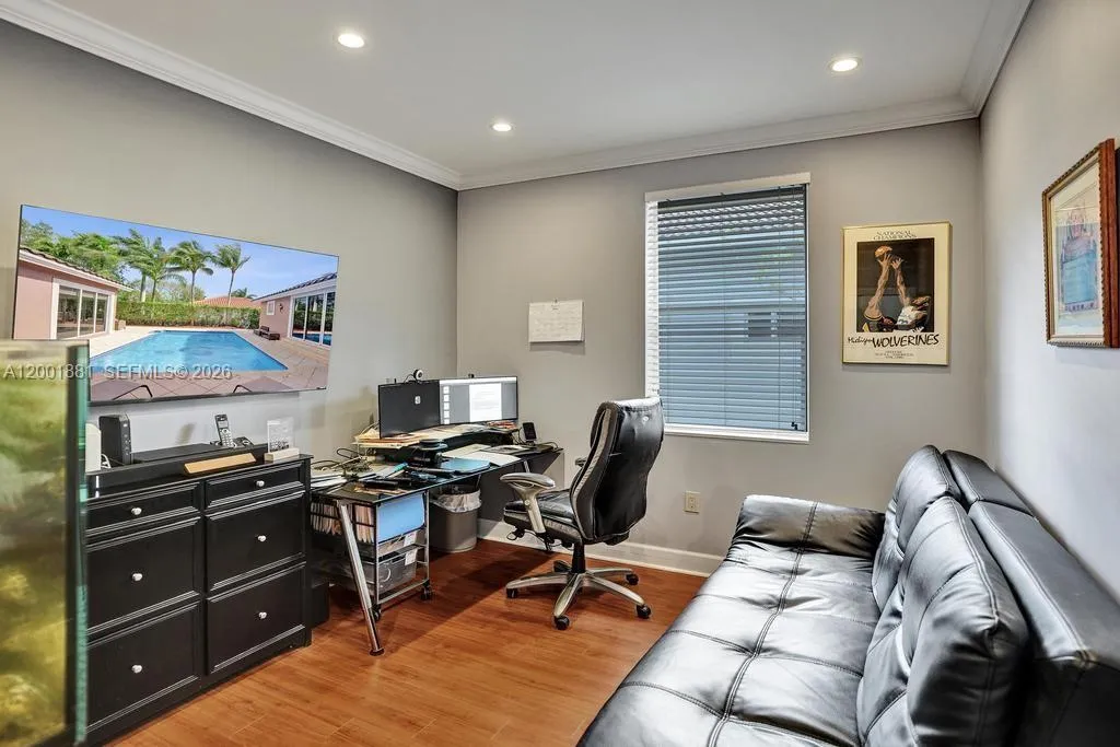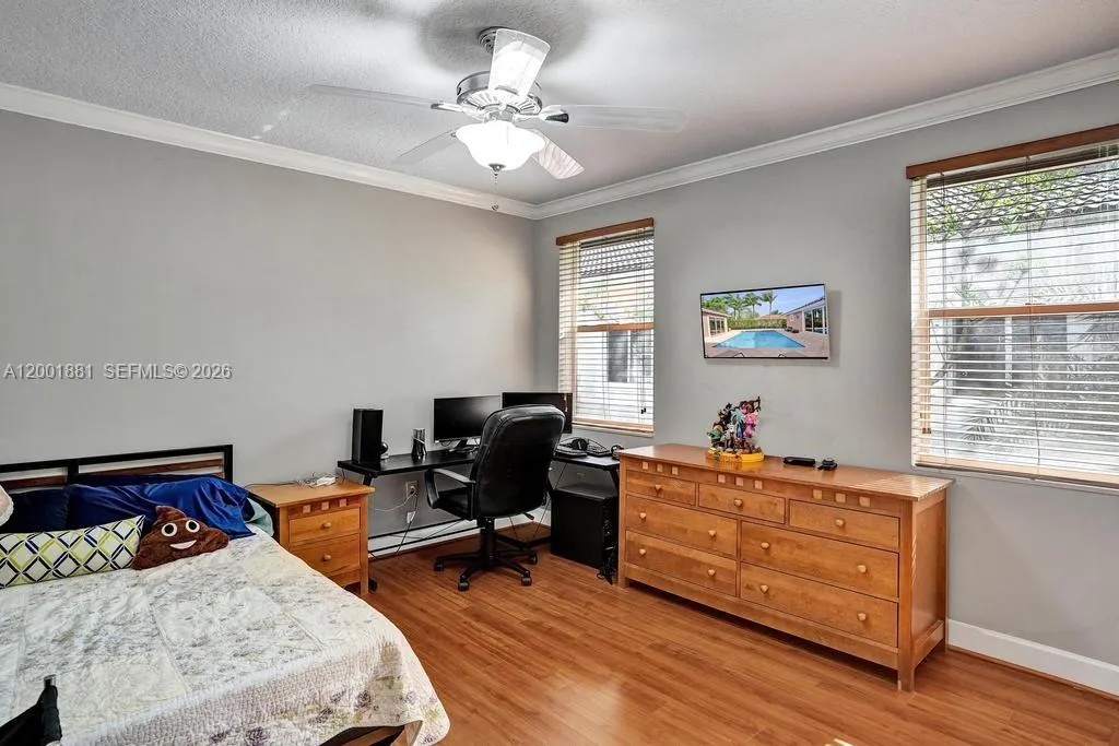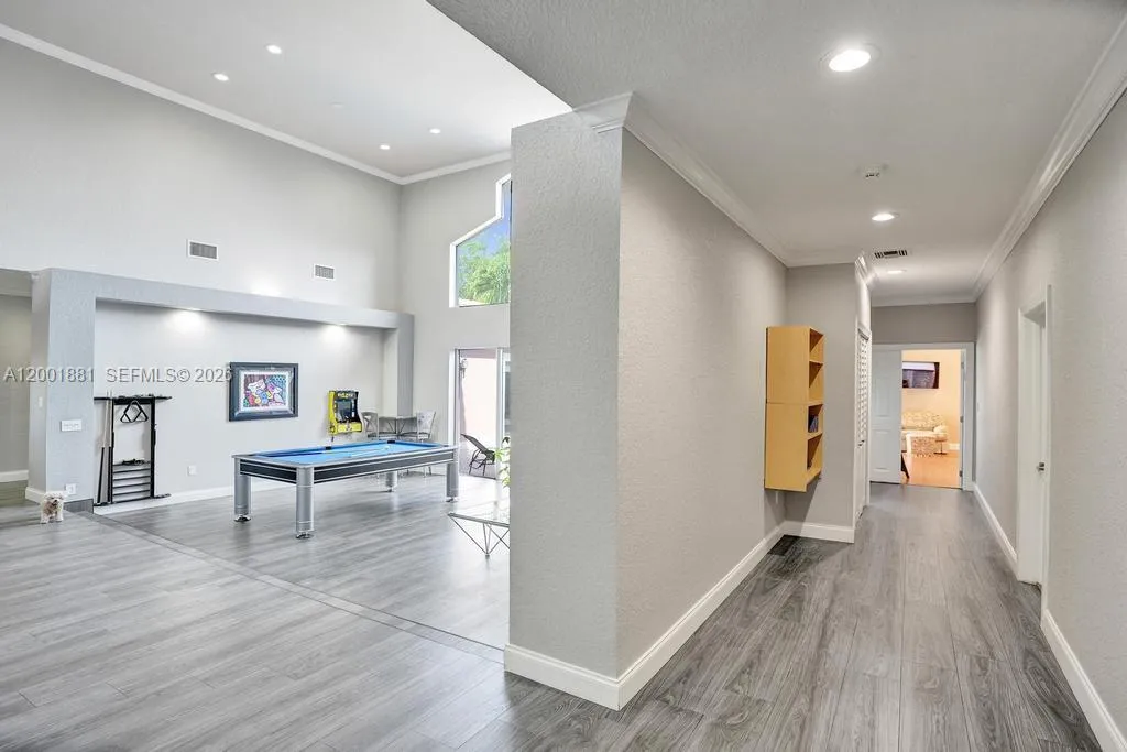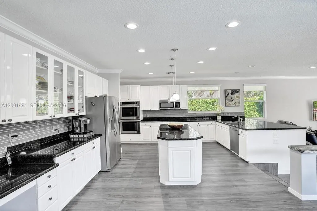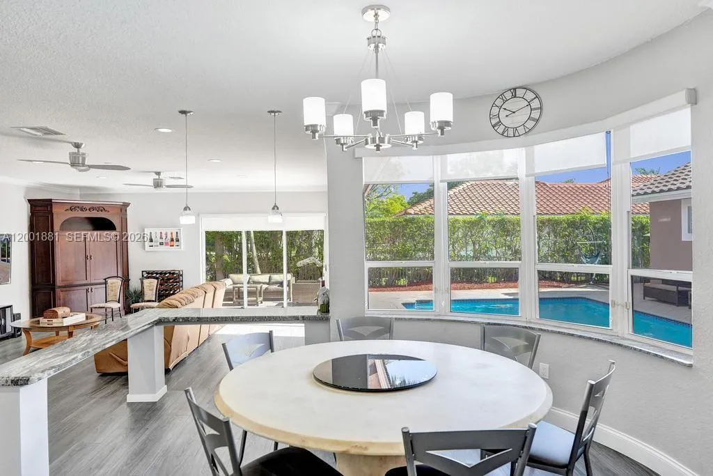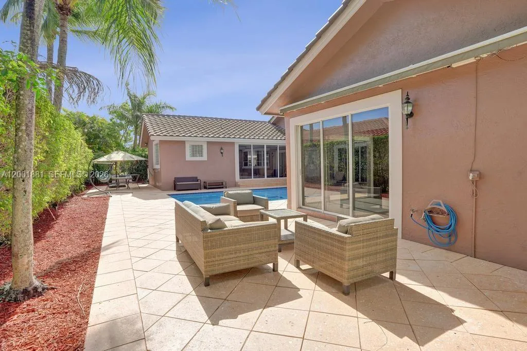 Located in The Landings, with access to all of Parkland’s Grade A schools. Set on an oversized 12,367 sq. ft. corner lot, this bright 5-bed, 3.5-bath one-story home is built in a U-shape around a private pool viewed from nearly every room.rnAs you enter the home, you are struck by tall cathedral ceilings and a dramatic peaked window that frames the pool in the great room. The updated kitchen features white cabinetry, granite counters, an oversized island, stainless appliances, and a bay window overlooking the pool, flowing seamlessly into the dining and family rooms.rnAll bedrooms and bathrooms sit together on one side of the home. No split layout separating you from the kids. The primary suite offers vaulted ceilings, an upgraded spa-like bath with a frameless glass shower and dual granite vanities, and sliding doors that open directly to the pool deck.rnNew 2023 roof. 3-car garage. Just one street from the home, residents enjoy the community’s HOA-included amenities: tennis and basketball courts, a picnic area, and a children’s playground, all for a low HOA of just $1,175/quarter (less than $400 monthly).