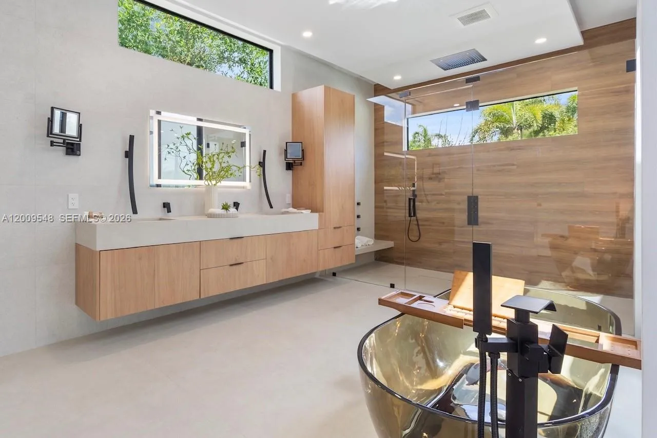 A rare opportunity to own a newly built 2026 residence with standout design and exceptional features, just minutes from Wilton Drive, Fort Lauderdale beaches, and Las Olas. This architecturally striking 4-bedroom, 4.5-bath home sits on a 10,000 sq. ft. lot in a prime section of Wilton Manors. Designed to impress, the home blends bold, loft-like scale with seamless indoor-outdoor living, highlighted by dramatic 15-foot ceilings and walls of glass. The process went well beyond drywall and paint, and every corner of this home has been carefully curated for those who appreciate the finer details. From a showcase kitchen crafted with Cristallo slabs and a Wolf gas cooktop to a dramatic floating stair and waterfall entry, the home features smart home control with audio and video, seamlessly opening to a private, resort-style backyard with heated saltwater pool, spa, and lush outdoor living, along with two primary bedroom suites—one featuring a tropical outdoor shower. This is more than a residence—it is a fully realized living environment designed to be experienced, an opportunity to own a true statement home built for both everyday living and unforgettable moments. Key features include smart switchable privacy film for garage/living room glass, EV chargers, dual-zone HVAC, smart pool controls, gas cooking, and stunning hardscape and outdoor design.