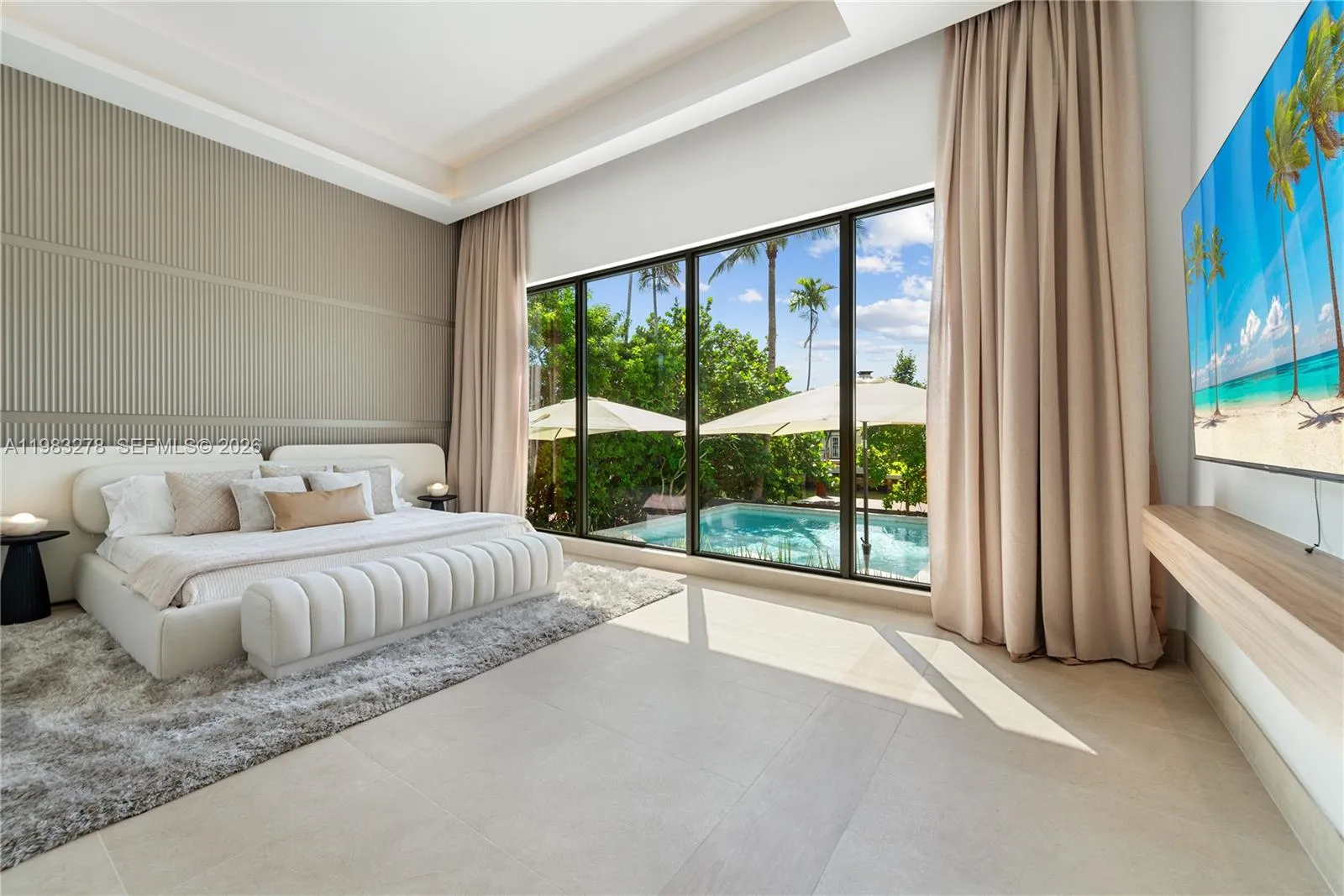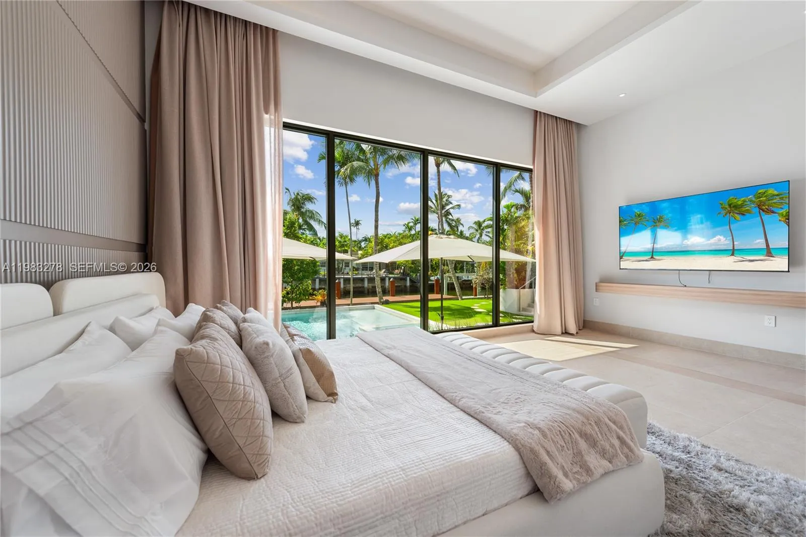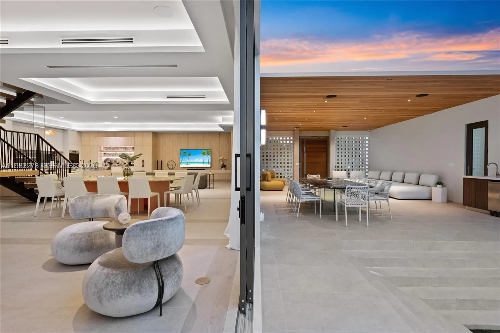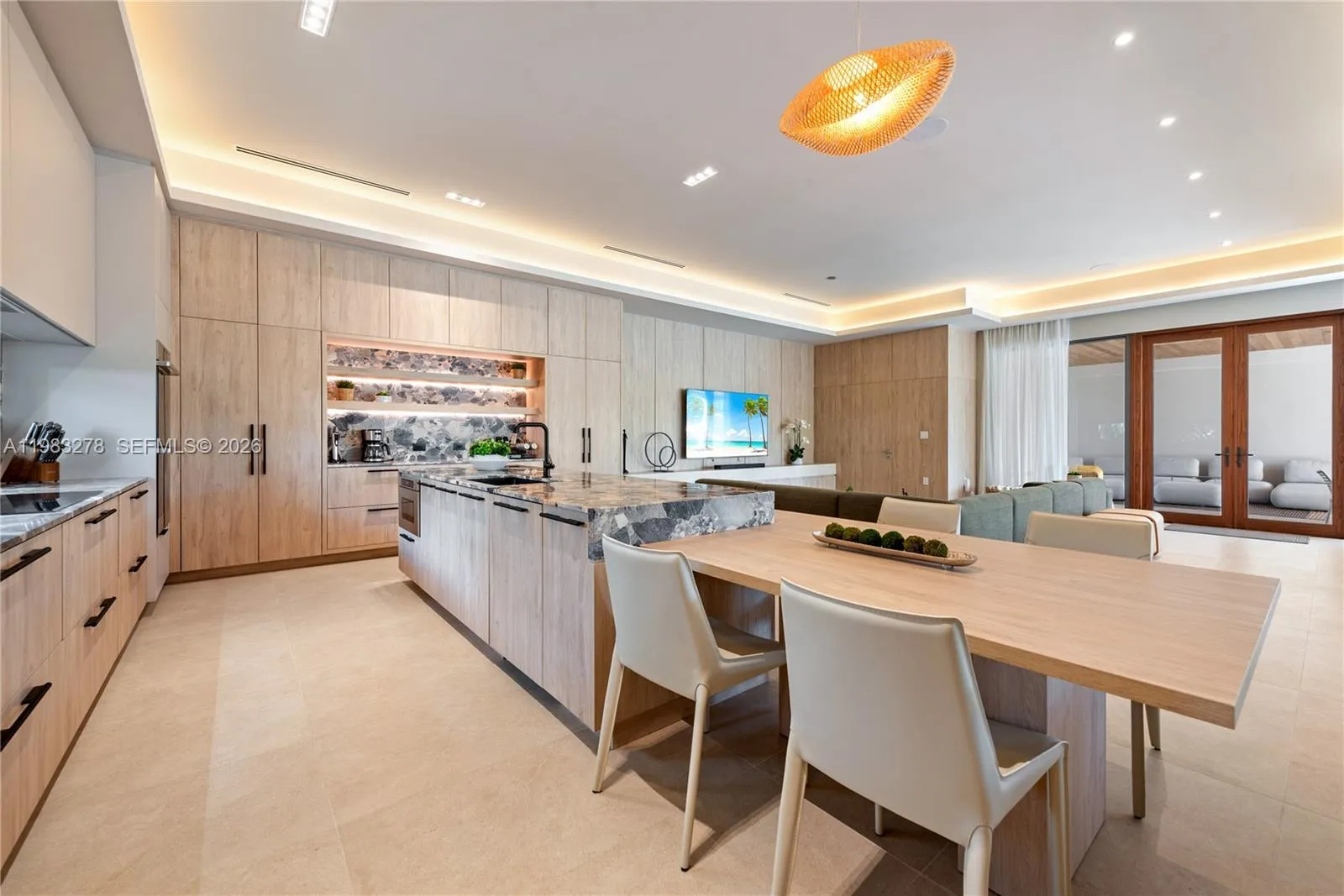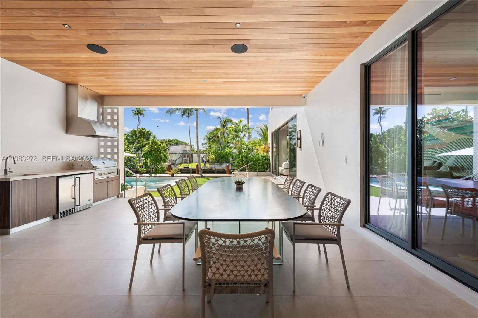 New construction, completed in 2023, offering the utmost in luxury and comfort. Boasting seven spacious bedroom suites and seven bathrooms, this home ensures ample space for family and guests. One of the seven bedrooms is located in a connected guest house, providing privacy and convenience. Inside, you’ll find a beautifully designed living room, dining room, and family room, perfect for relaxing and entertaining. For outdoor dining and entertaining, there is an additional dining room. Each bedroom and the family room are equipped with televisions for your entertainment, and a laundry room. The outdoor amenities are truly exceptional, featuring a refreshing pool and relaxing hot tub, an outdoor kitchen for culinary delights, and a massive covered terrace with yet another outdoor kitchen.