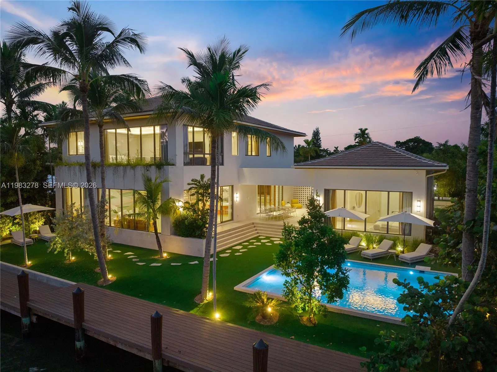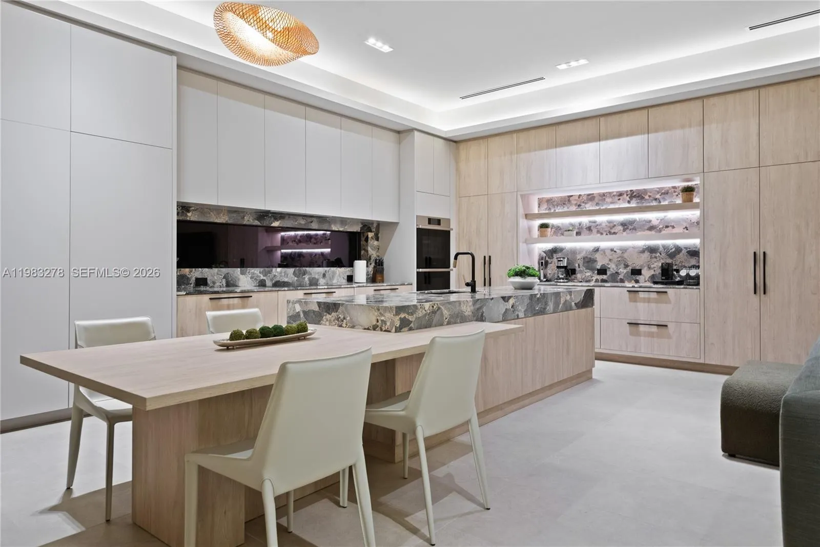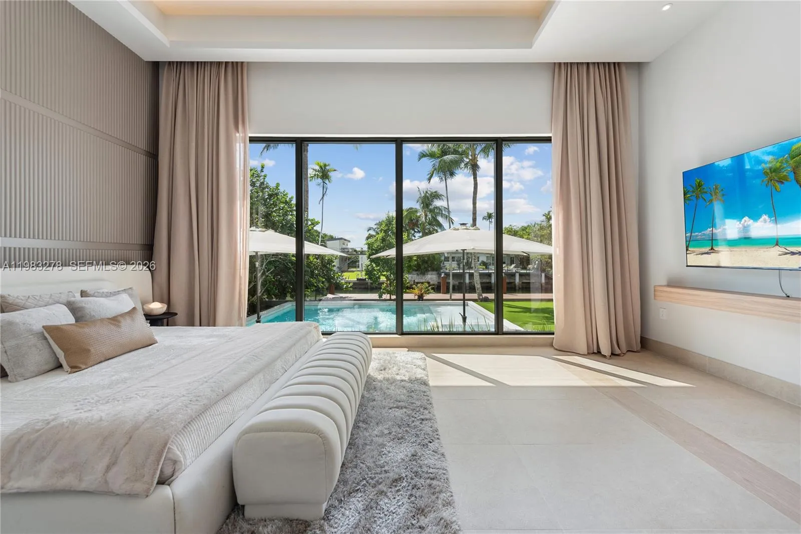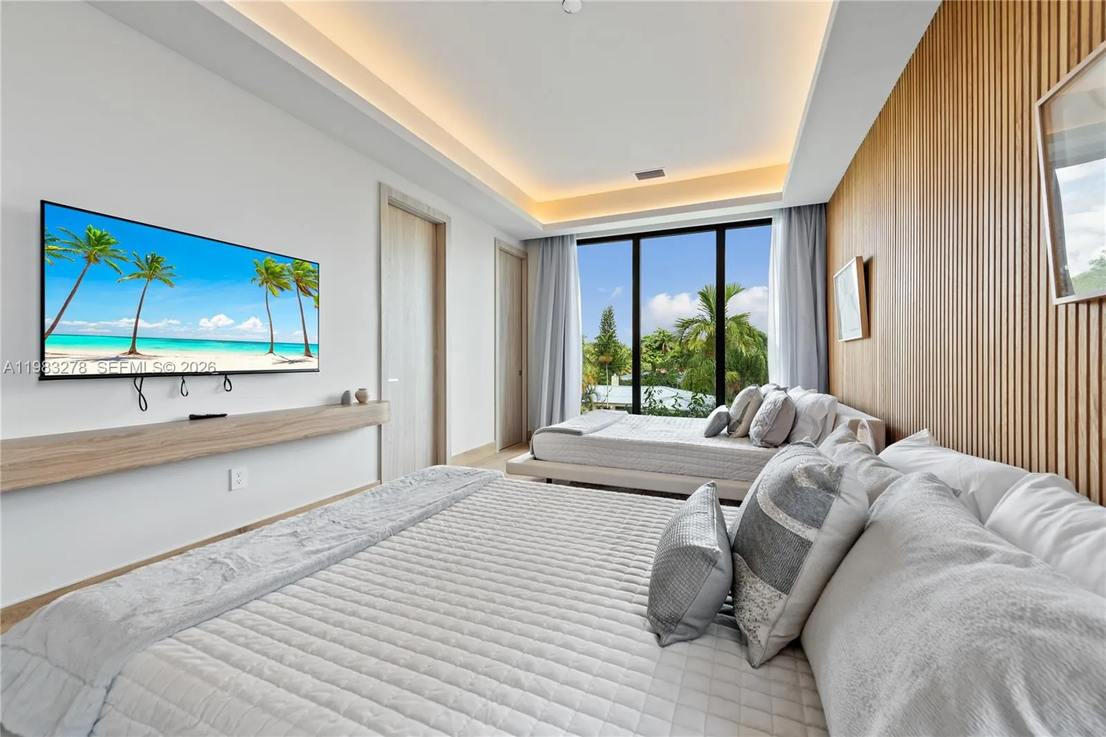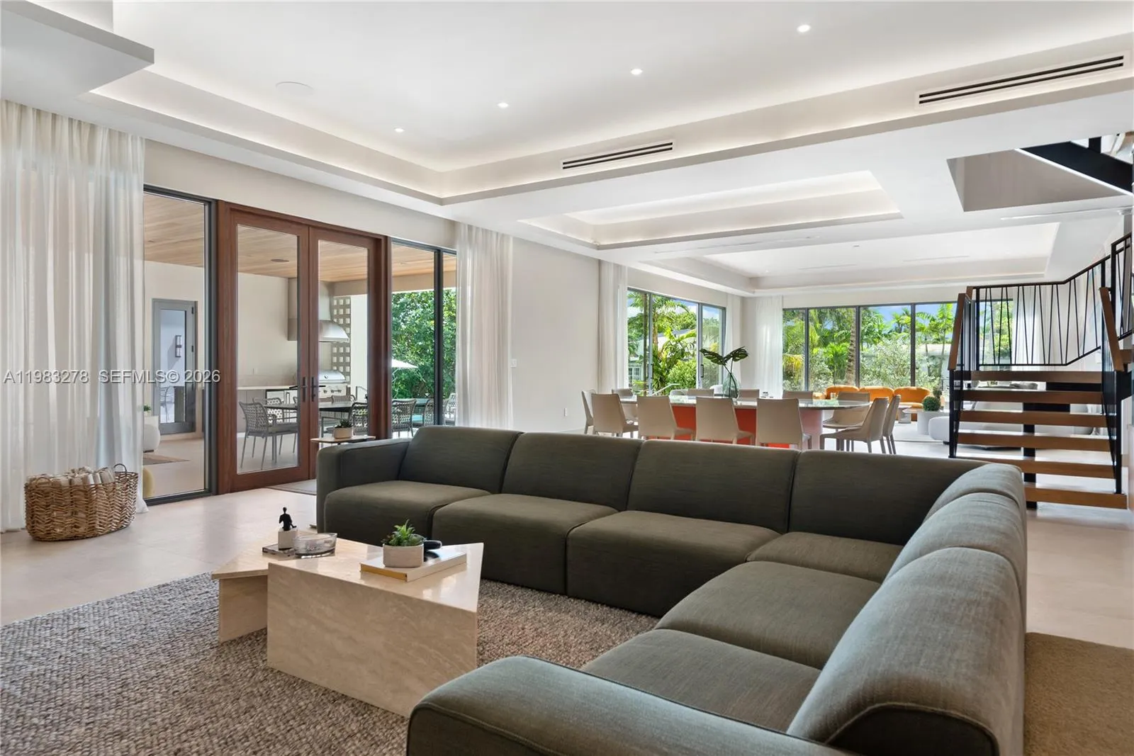New construction, completed in 2023, offering the utmost in luxury and comfort. Boasting seven spacious bedroom suites and seven bathrooms, this home ensures ample space for family and guests. One of the seven bedrooms is located in a connected guest house, providing privacy and convenience. Inside, you’ll find a beautifully designed living room, dining room, and family room, perfect for relaxing and entertaining. For outdoor dining and entertaining, there is an additional dining room. Each bedroom and the family room are equipped with televisions for your entertainment, and a laundry room. The outdoor amenities are truly exceptional, featuring a refreshing pool and relaxing hot tub, an outdoor kitchen for culinary delights, and a massive covered terrace with yet another outdoor kitchen.