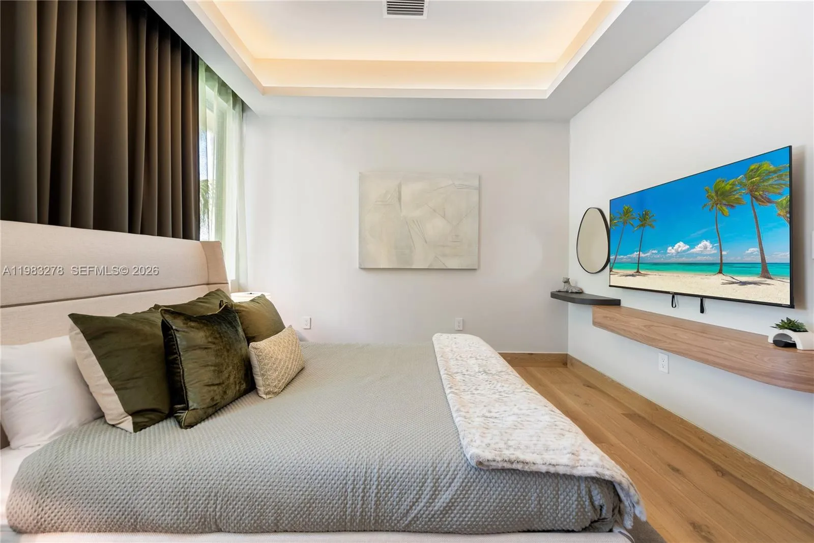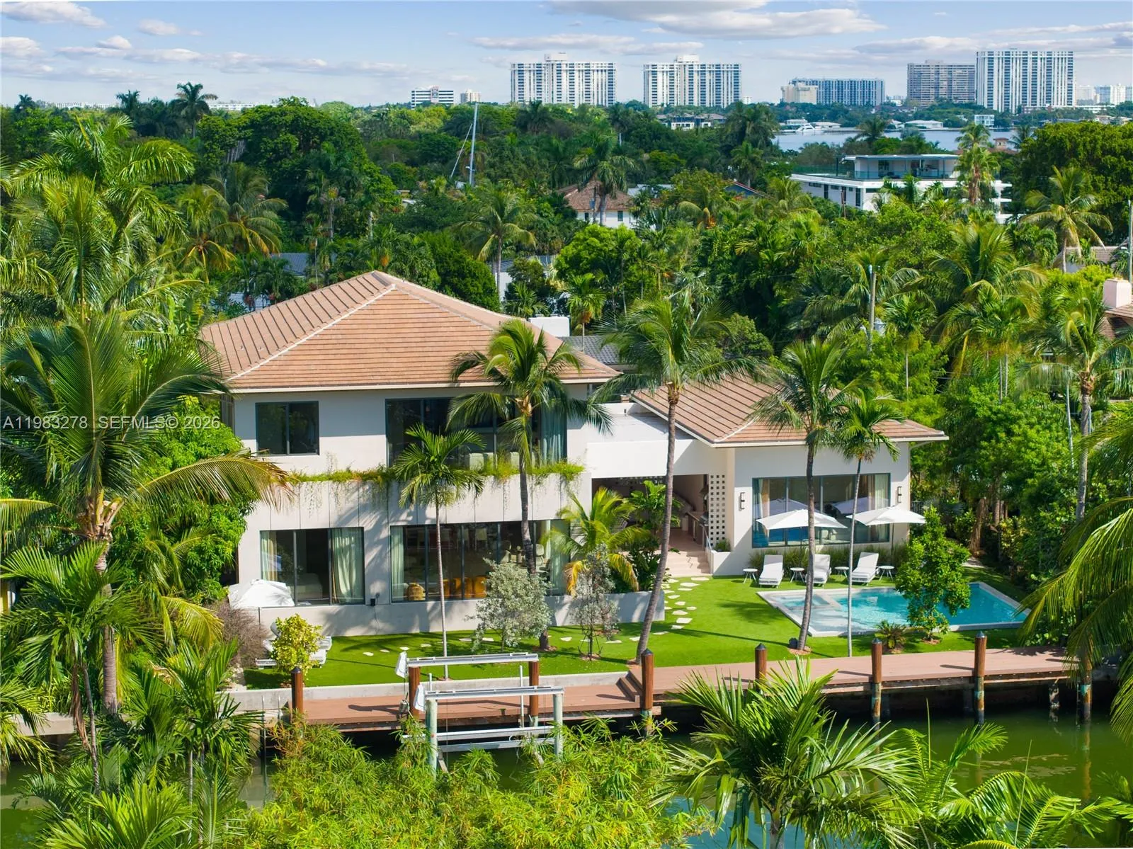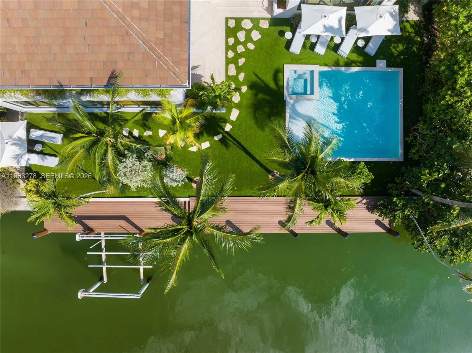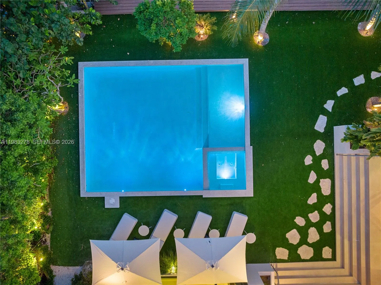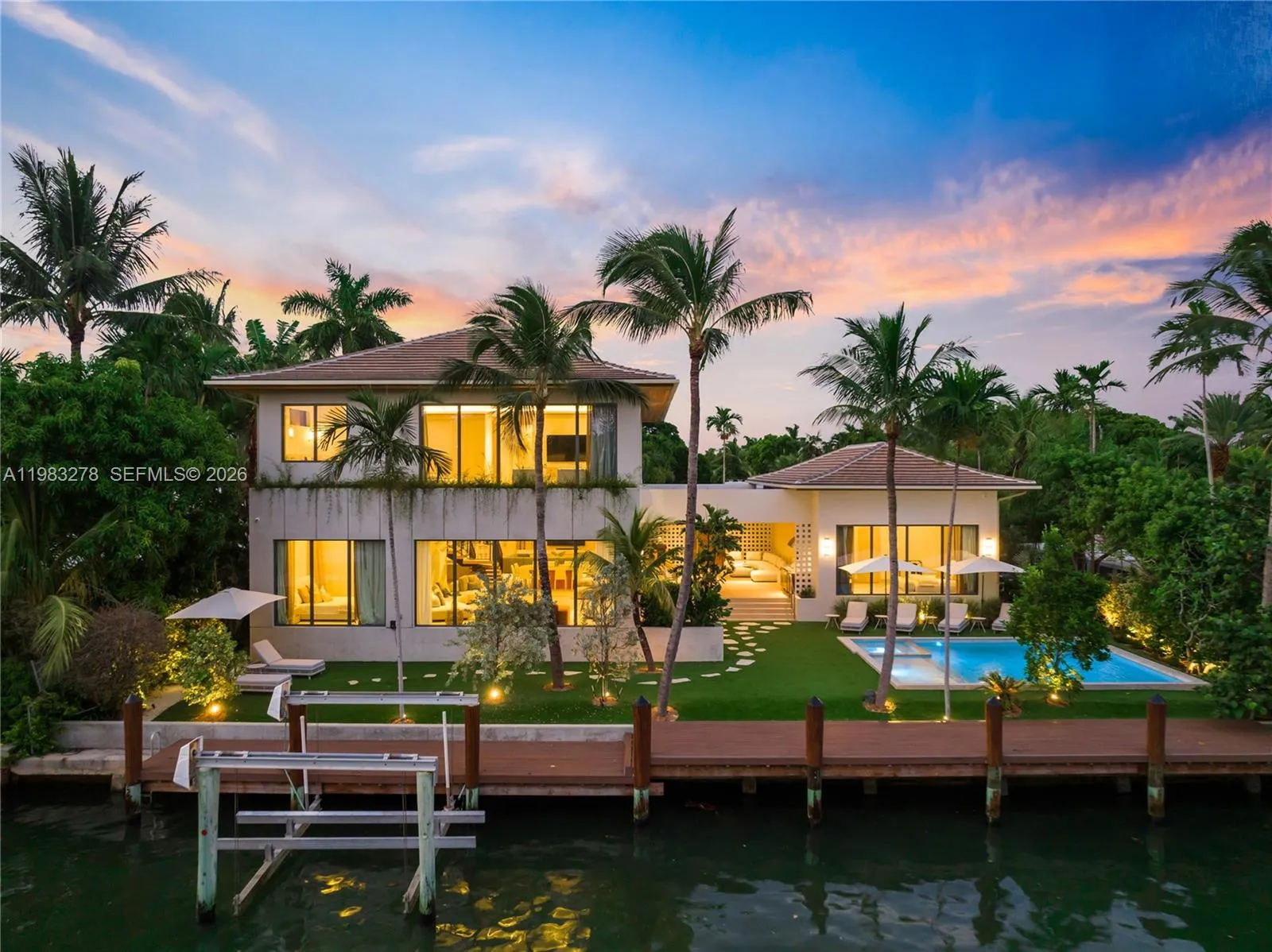 New construction, completed in 2023, offering the utmost in luxury and comfort. Boasting seven spacious bedroom suites and seven bathrooms, this home ensures ample space for family and guests. One of the seven bedrooms is located in a connected guest house, providing privacy and convenience. Inside, you’ll find a beautifully designed living room, dining room, and family room, perfect for relaxing and entertaining. For outdoor dining and entertaining, there is an additional dining room. Each bedroom and the family room are equipped with televisions for your entertainment, and a laundry room. The outdoor amenities are truly exceptional, featuring a refreshing pool and relaxing hot tub, an outdoor kitchen for culinary delights, and a massive covered terrace with yet another outdoor kitchen.