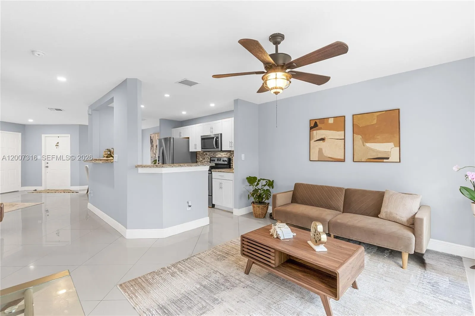 Well-maintained 3-bedroom, 2.5-bath corner townhouse situated on a desirable lakefront lot. The home offers a private fenced patio and an updated kitchen with granite countertops and stainless steel appliances. Features tile flooring in the main areas and laminate flooring upstairs and on the staircase and renovated bathrooms. One-car garage with plenty of guest parking available. Residents enjoy access to exceptional amenities including 3 pools, beach area, pier, clubhouse, fitness center, sauna, covered picnic areas, playgrounds, tennis, racquetball, basketball, pickleball, soccer, and volleyball courts. HOA includes security, landscaping, cable, internet, and alarm monitoring, sprinkler system. Conveniently located near I-75, shopping, dining, and A-rated schools. Ready to move in!