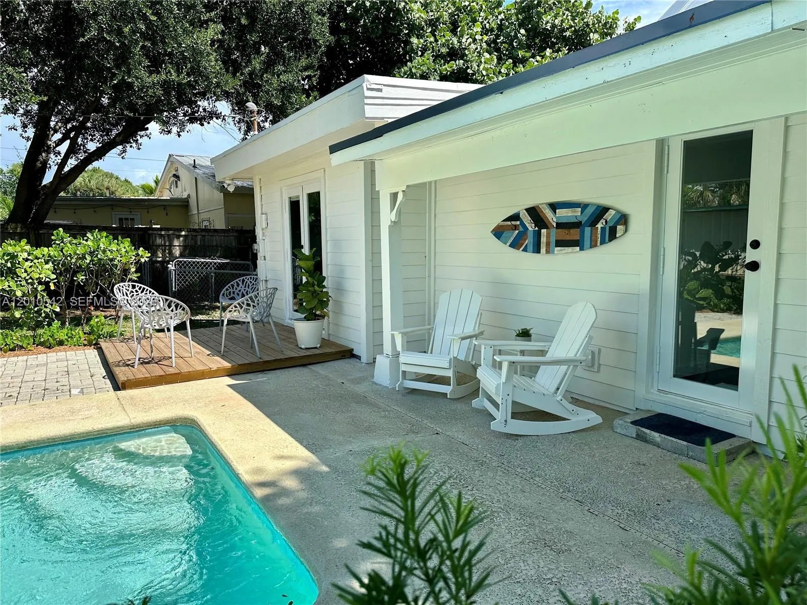 RARE FIND, Fully renovated Florida home blending timeless charm with modern upgrades in the heart of Jensen Beach. Originally built in 1940 with durable Dade County pine, this property has been completely restored featuring a new kitchen, updated bathrooms, hurricane IMPACT WINDOWS & DOORS, refinished hardwood floors, new A/C ductwork, and fresh interior and exterior paint. Brand new washer/dryer. rnrnIdeal for both home owners and investors, the property offers additional upside with a detached structure that presents strong potential for studio conversion or income-producing use. Conveniently located just minutes from pristine Treasure Coast beaches, shopping, dining, marinas, parks, and both downtown Jensen Beach and historic downtown Stuart.rnrnThe private backyard is a TROPICAL OASIS featuring a POOL, coconut palms, a spacious lot, and a large storage shed.