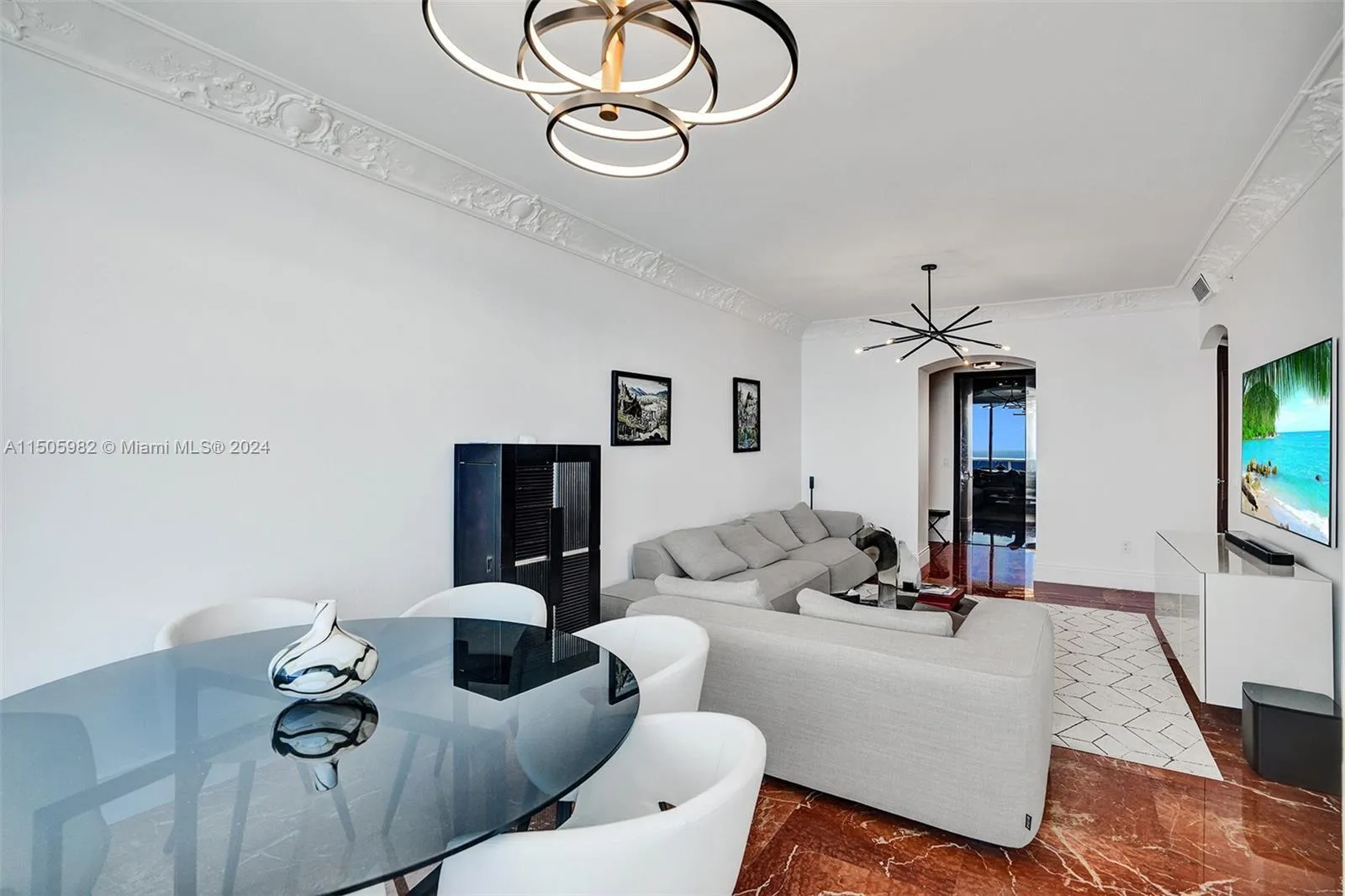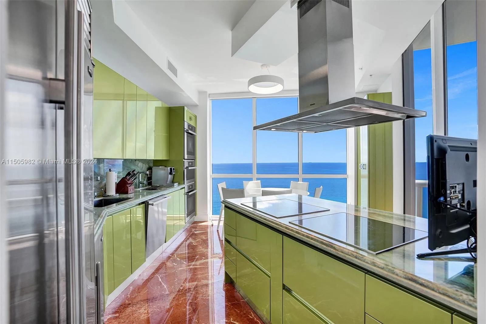 Immaculate oceanfront residence with luxurious upgrades at Trump Royale. This unit features the largest two-bedroom floor plan, totaling of 1,722 SQFT. Featuring 10ft ceiling with crown moldings, exquisite Turkish Rosso levanto marble floors throughout, electronic shade system, all custom marble bathrooms, onyx sauna shower, gold platted faucets, electronic TOTO NeoReat system. The bright with stunning ocean views custom marble Italian kitchen features two subzero refrigerators, all upgraded Miele appliances with two stoves and two sinks. Miele washer & dryer. Custom Italian solid wood doors and frames, closets, electronic shade system. Brand-new high-end furniture is negotiable. This is truly your gem in the ocean.