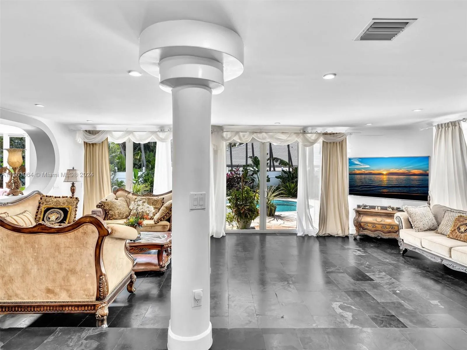 Step into luxury living in this unique 4 bed/3.5 bath two-story residence with a contemporary design in the prestigious city of Golden Beach. Enjoy the lush outdoor tropical saltwater pool and terrace, perfect for relaxation and soaking in the sun. With one bedroom downstairs and three upstairs, this home offers the perfect layout for comfort and convenience. Experience the bright, airy living space with plenty of natural light, enhanced by impact windows and doors throughout. Located across from the ocean, residents can also indulge in the exclusive amenities of Golden Beach, including private beach access, parks, tennis courts, and the security of a dedicated police department. Live the beachside dream in this upscale retreat.