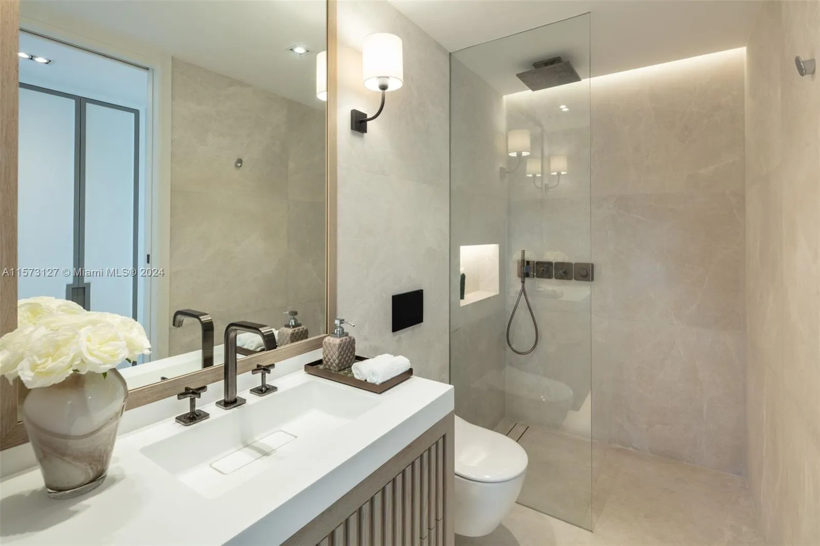 Property is located in Marbella, Spain. Coconut, a luxurious duplex in Puente Romano Resort, boasts stunning sea views and southern exposure. It features expansive terraces, direct terrace access via sliding doors, and a serene blue and neutral color palette. The living area includes a bookshelf, bar, and fireplace, connected to a dining area and a kitchen with a marble island and modern appliances. Two ground floor guest bedrooms have en-suite bathrooms. The master suite upstairs offers a private living area with a fireplace, walk-in closet, en-suite bathroom, and a terrace with a pool overlooking the sea, encapsulating Marbella’s elite beachside lifestyle.
