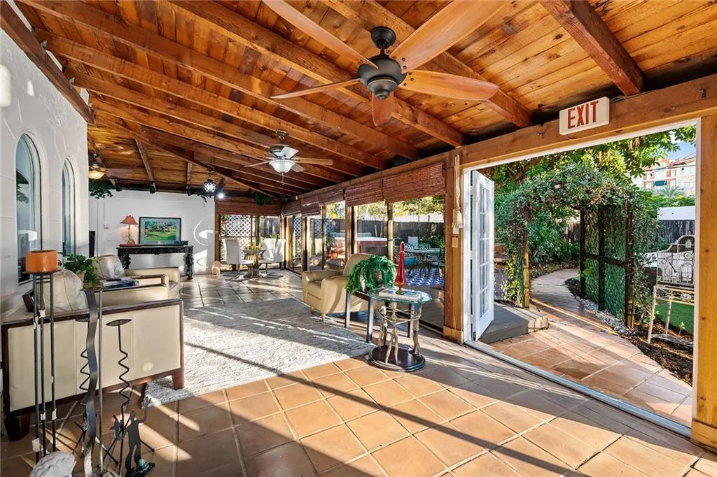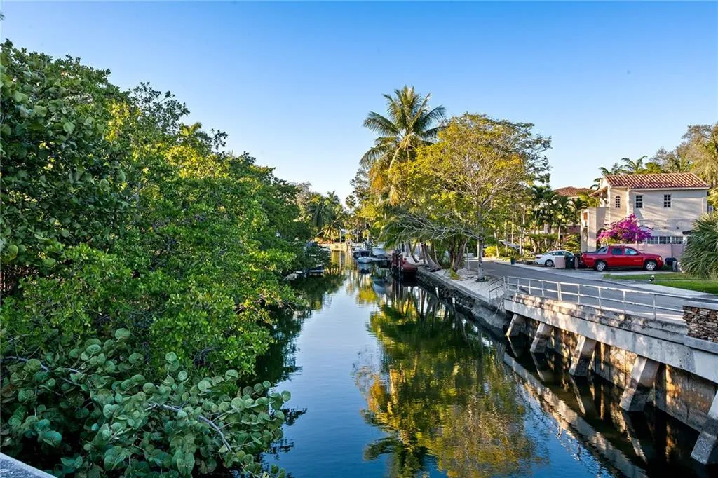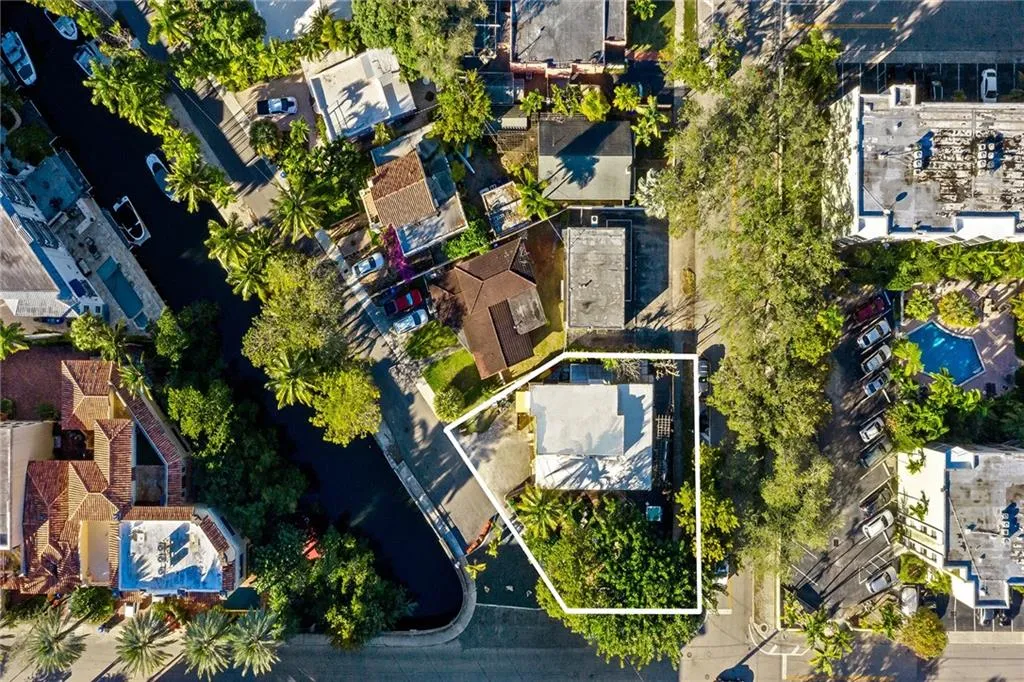 Italian-infused architectural bliss awaits 1 block off Las Olas Blvd in Beverly Heights! Corner lot, waterfront + 7 parking spaces – yes, this is real in today’s hot market! Florida charm meets modern zen w/ Italian murals, arches, soaring ceilings, fresh paint, + select skylights throughout. Cedar-lined enclosed patio w/ 8 sliding glass doors + gleaming Saltillo tile. Marble, tall cabinets + stainless-steel appliances in kitchen. Primary suite w/ 2 original murals, French door exit + ensuite bath clad in classic green tile. Huge walk-in laundry room. A former photography studio, ready for entertaining or an Airbnb! Fully fenced yard w/ extensive wooden decking, hot tub + pops of green. Zoned for a single-family home or two townhomes. Experience it while you can!