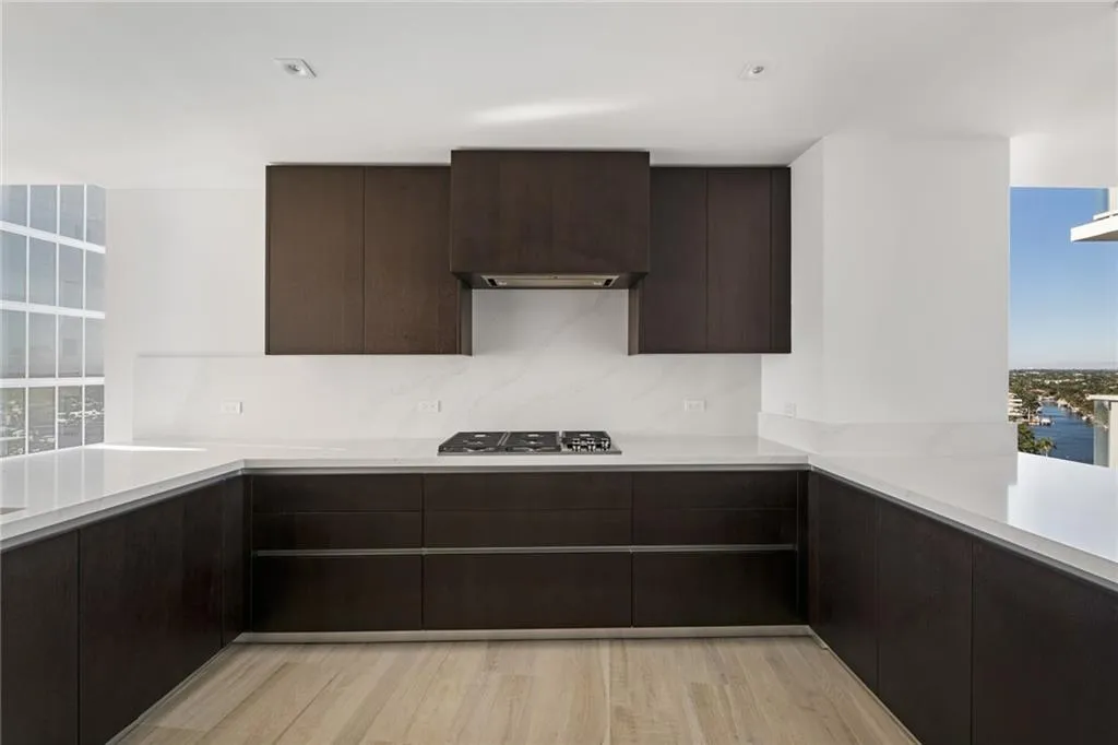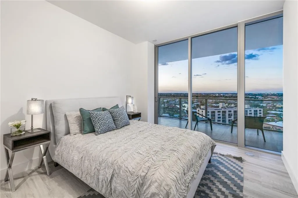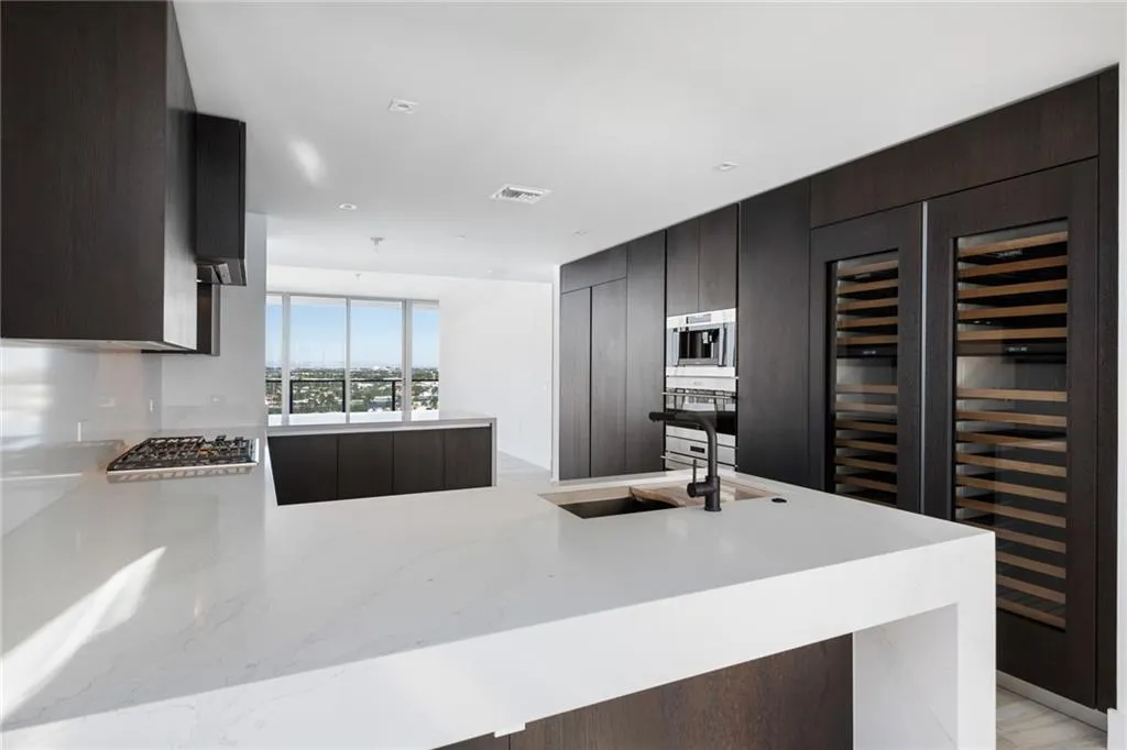 Welcome home to residence 1201 at the Auberge Beach Residences & Spa, Fort Lauderdale’s newest 5-star luxury beachfront private residences and home to DUNE, a Michelin Star culinary excellence. 1201 features gorgeous wood plank porcelain tile encompassing the entire living area totaling 4,440 SQ. FT. 3,422 SQ. FT. Interior /1018 SQ. FT. Exterior. This expansive layout offers four bedrooms, six full bathrooms, office, and maid quarters. The unit design is a contemporary glass corner flow through unit featuring SE, SW and NW 180 degree views of the ocean, Intracoastal and city. One of only two units located on the 12 floor. Features include exquisite 9’6″ floor to glass ceilings, a chef kitchen designed with Italian cabinetry, stone countertops, and integrated espresso/cappuccino system.