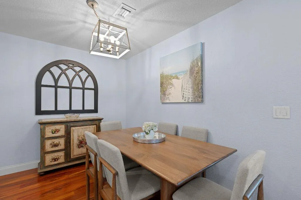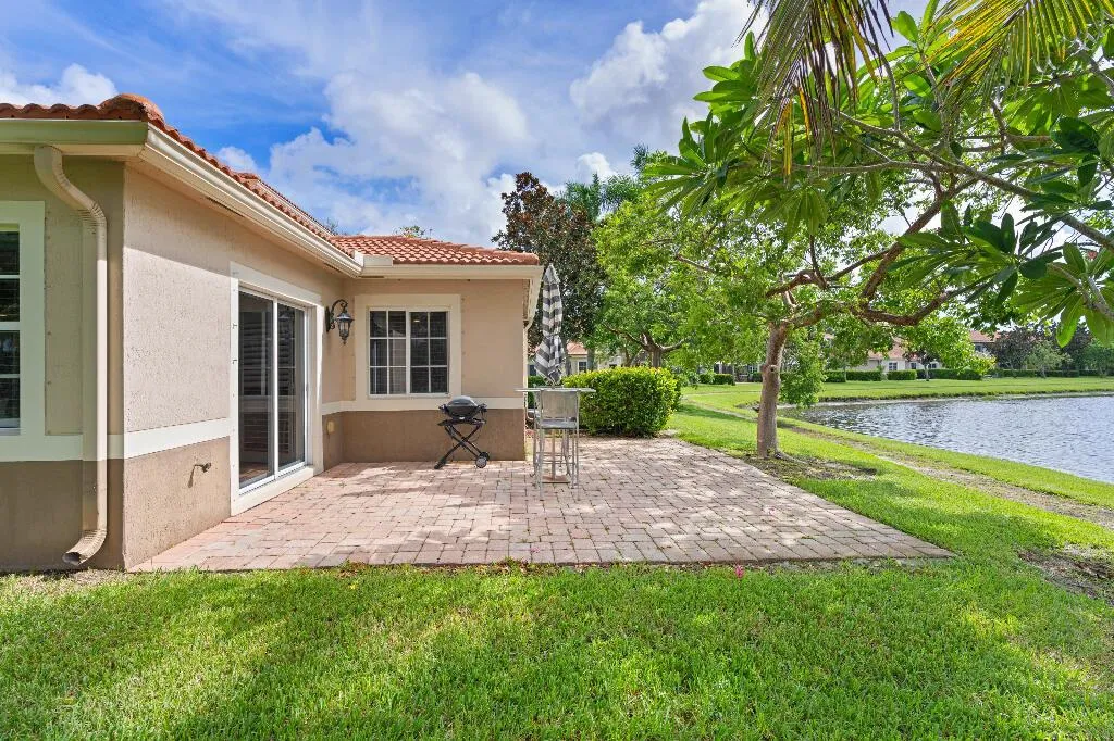 This pristine 3-bedroom, 2 bath, end-unit townhouse built in 2007 boasts 1361 sq ft featuring a large great room open to the kitchen and dining area, with wood floors throughout. The kitchen is appointed with newly updated shaker-style wood cabinets, quartz countertops, and stainless appliances. The primary BR offers a picturesque view of the lake and fountain, with an en suite bath and WIC. Add’l 2 bedrooms, one of which is currently being used as an office, share a bath.. Sliders lead to a spacious paver patio which backs to the lake, surrounded by lush trees. This community offers amenities such as a pool, workout room, and walking trails. Plus, you’ll be in a prime location, just 10 min. from Atlantic Ave, 15 min. from Delray Beach, and located between FL Turnpike and I-95.