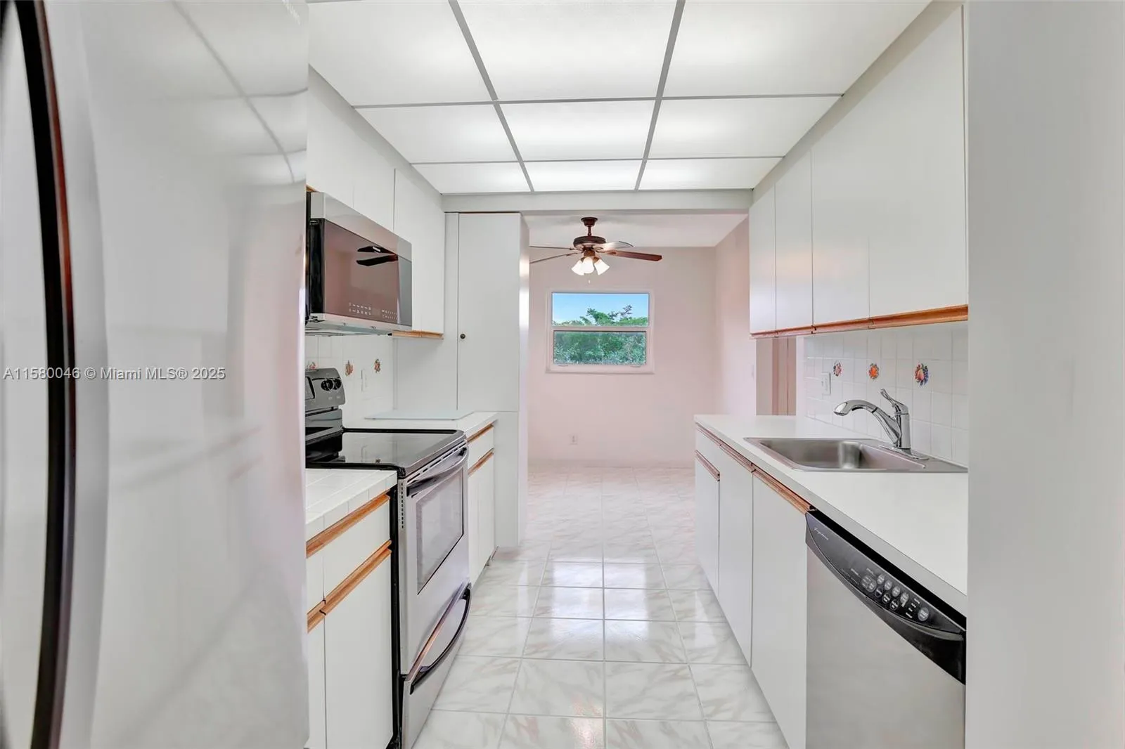 Top-floor corner unit with a breathtaking golf view and 1,507 SQ.FT. a well-maintained interior, complete with attic access through the master bedroom closet and a convenient shower bathroom. The kitchen features pull-out drawers for easy access, stainless steel appliances including a French door refrigerator and wood flooring with a high-quality finish. With hurricane impact windows and accordion shutters on the patio, peace and security are ensured, allowing for uninterrupted enjoyment of the breathtaking golf course views. Additionally, the potential to customize the space to your liking, adding even more value to this already desirable property. Enjoy Resort-style living with a clubhouse, movies, fitness center, transportation, free golf, pharmacy, cafe, 24-hour security patrol.