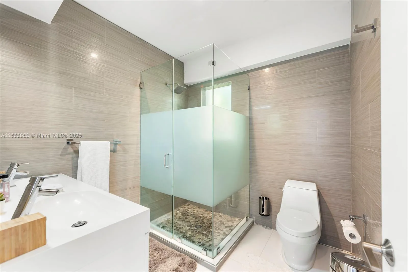 Live in the coveted gated Normandy Shores boasting a premier golf course, tennis courts and much more. Set in a peaceful, family-friendly neighborhood, this beautifully renovated 4-bed, 4.5-bath waterfront home is crafted with high-end construction materials, standout features include Italian Porcelanosa floors, custom lighting, and elegant window treatments. The expansive outdoor space is perfect for entertaining, with a large pool, a covered dining area, and a private dock that accommodates a 48-ft boat.