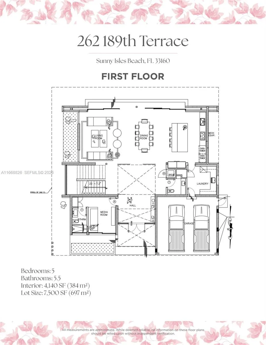 BRAND NEW BUILD MODERN ESTATE IN THE HEART OF SUNNY ISLES BEACH! Furnished by Artefacto! Modern Tropical Oasis Lined with Lush Landscaping Encompassing 5 Bedrooms + 5 Baths + Powder Room in 4,140 Interior SF on 7,500 SF LOT. Open Floorplan with Calacatta Flooring on Ground Level featuring Entertaining Spaces + Wine Cellar. Soaring Ceilings with Recessed Lighting & Drop Ceilings. Spacious Primary Suite with Dramatically-Lit Accent Wall. Custom Italian Kitchen with Oversized Island Countertop & SubZero Appliances. Primary Baths with Hansgrohe & Duravit Fixtures + Rainshower. Indoor/Outdoor Living with Deck Perfect for Entertaining. Located in the Heart of Sunny Isles Beach, Near Aventura Mall, Dining & Oleta River State Park. Ready to Move In!