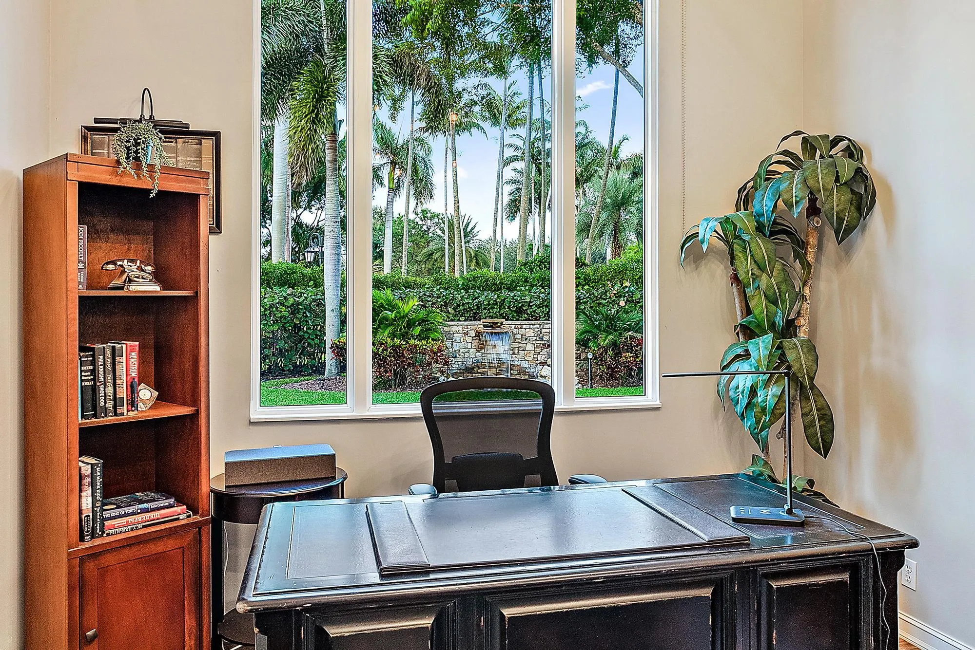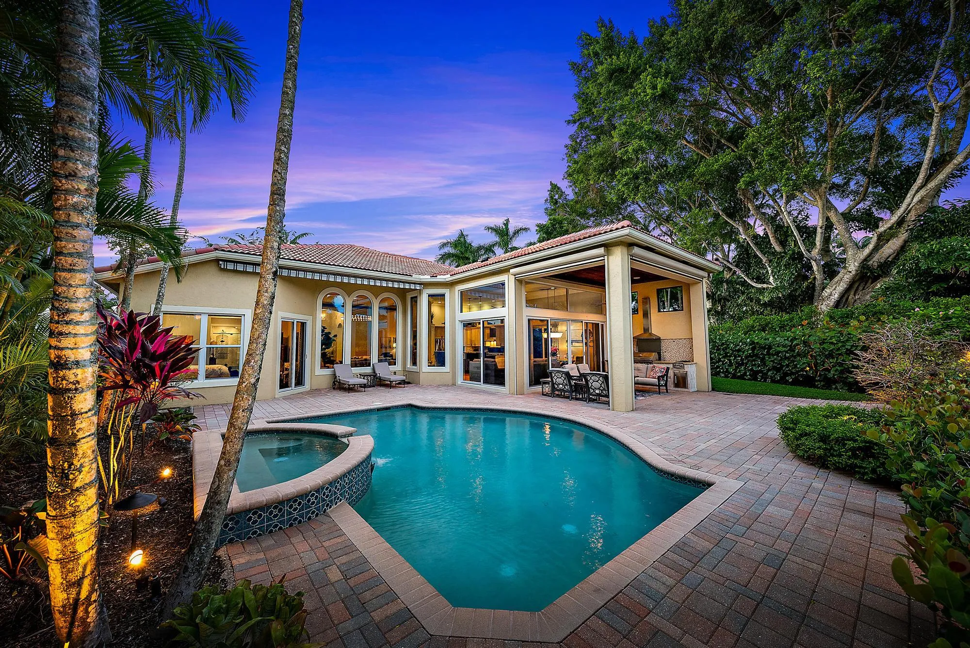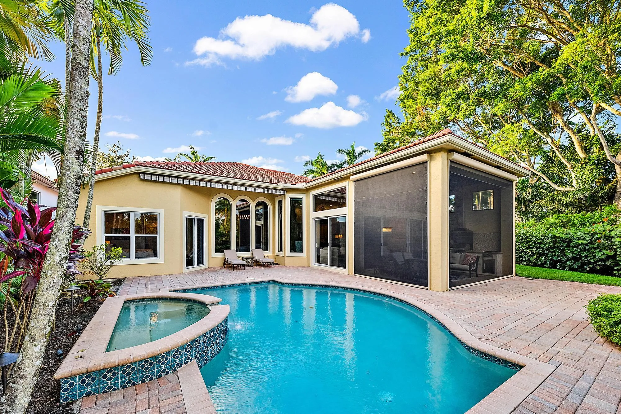 Featuring one of the largest lots in Tradition Cove, this one-of-a-kind, FULLY RENOVATED home offers incredible upgrades, luxurious finishes and fixtures. Everything has been done for you. The NEW ROOF was installed in 2023, along with all new IMPACT GLASS throughout, installed in 2023 as well. The magnificent .34-ACRE LOT offers an enormous fenced in side yard and a tranquil stone waterfall that provides a unique focal point from inside the home. The interior has been fully reimagined and beautifully renovated in a warm transitional aesthetic. Featuring Italian porcelain wood-look tile flooring throughout, there is no carpet in this home. Available FULLY FURNISHED with designer curated furnishings.