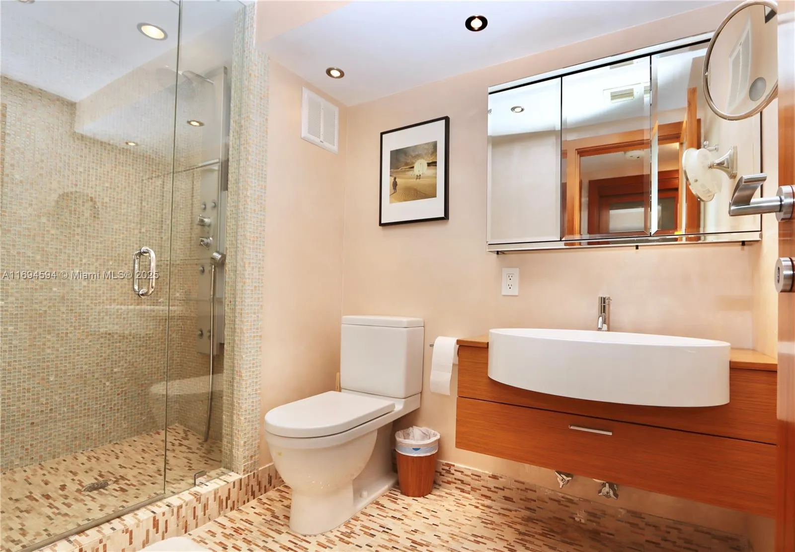 SPECTACULAR VIEWS TO THE INTRACOASTAL, OCEAN & THE MIAMI SKYLINE FROM THIS 3 BEDROOM/ 3 BATH CORNER UNIT- FULLY REMODELED: Built-in furniture, all doors & cabinets were designed & manufactured by ITALIAN DESIGNER Mr. Alberto Bugatti, at his factory in Milano, Italy. MIELE Kitchen appliances, washer & dryer. Kitchen cabinets have special glossy white finishing. The kitchen countertop made of eco-friendly light grey compound, easy to clean and maintain. White marble floors throughout the unit, walls have been painted with long lasting LUXURIOUS Venetian paint. All three bathrooms made of ceramic mosaic, of different colors. Master bedroom bed is electrically rotatable, for fun and for watching TV. A new air conditioning unit was installed in 2023!rn+WILLIAMS ISLAND-FULL AMENITY COMMUNITY
