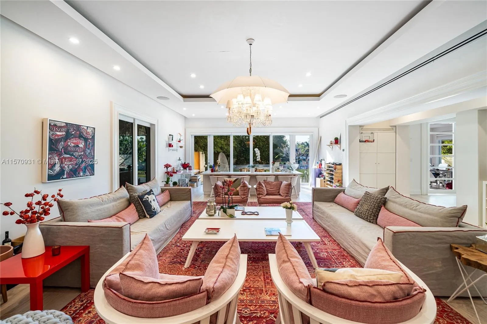 Gorgeous contemporary masterpiece nestled on this expansive 16,200 SF lot within the prestigious and guarded enclave Allison Island in Miami Beach. This Deco waterfront epitomizes perfection in every way. Completely renovated w/modern floor plan, perfect for entertaining. 6,200 sq, 7 bedrooms 5.5 bth + add’l bed/off/gym & 2 car gar. is move-in ready.Top-line Appliances & finishes with stunning water views, beautiful oversized pool w/gls tiles & LED lighting. 45 KW gas gen. w/auto transfer switch & powers entire home. Stunning SUNSET WATERVIEWS.