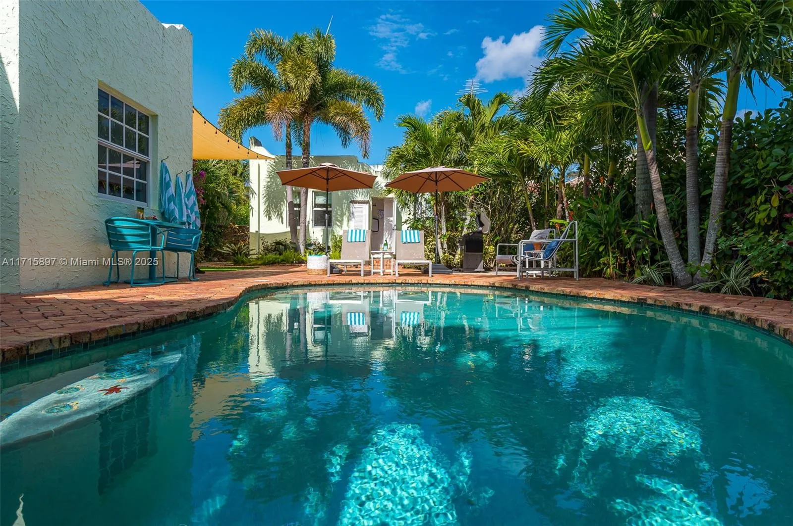 Welcome to your tropical retreat in historic Flamingo Park, where California Mission style meets Palm Beach charm. This beautifully remodeled Spanish villa blends Boho-chic elegance with modern comforts, perfect for families, sun seekers, and pet lovers. The main house features a cozy office nook, a welcoming living room with a decorative fireplace, a stylish dining area, and a chef’s dream kitchen with updated appliances. Relax in the primary suite with its king-size bed and designer en-suite bathroom or the Zen-inspired twin bedroom. The private guest cottage offers a king bed, luxury bathroom, and kitchenette. Outside, unwind in the heated saltwater pool, dine al fresco, or let pets enjoy the fenced yard. Available monthly for season or off-season. Also available weekly.