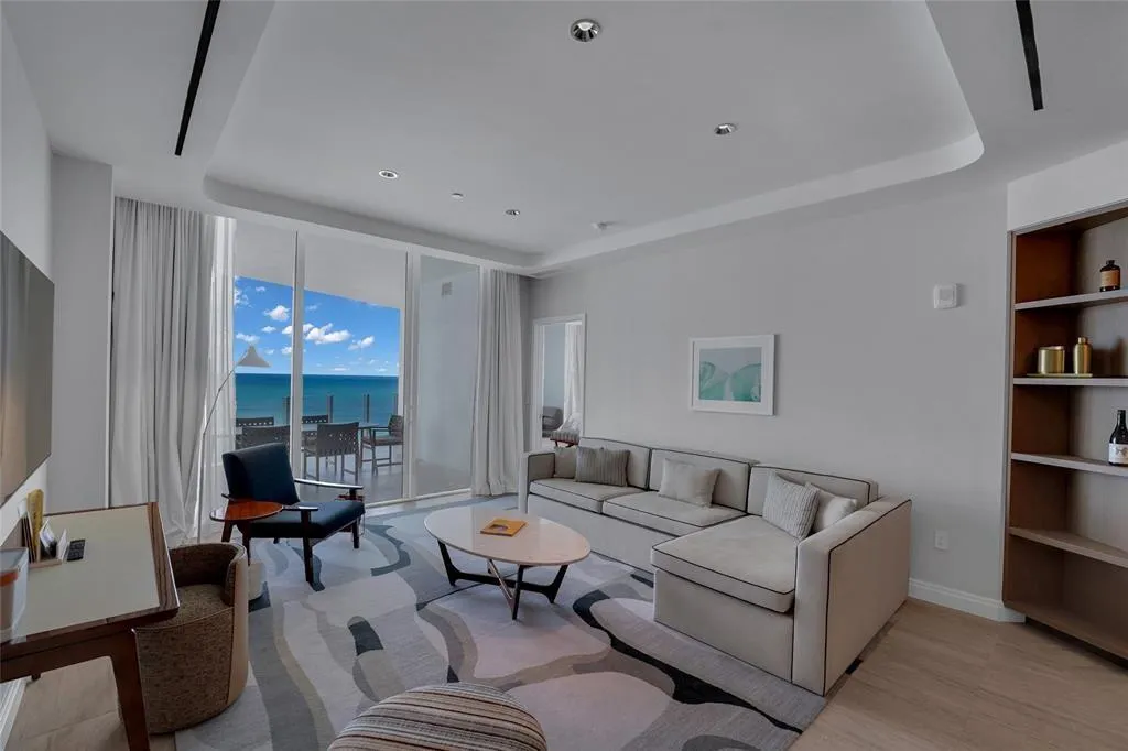 Step into luxury in the sky. This 12th floor oceanfront condo offers spectacular northeast views of the Atlantic. This fully furnished Four Seasons unit is a HOTEL RESIDENCE. Walk into the private foyer were dual owners retreat configuration optimizes privacy between you and your guests. One side of the unit features a spacious bedroom with two queen size beds, wet bar, gorgeous marble bathroom, and its own balcony/perfect for soaking in the ocean breeze. The other side features a second bedroom, two full bathrooms, large living room, dining room, gourmet kitchen with custom lacquered cabinetry with premium subzero and wolf appliances. With two balconies and stunning views from nearly every room, this residence offers a vacation like lifestyle year-round!