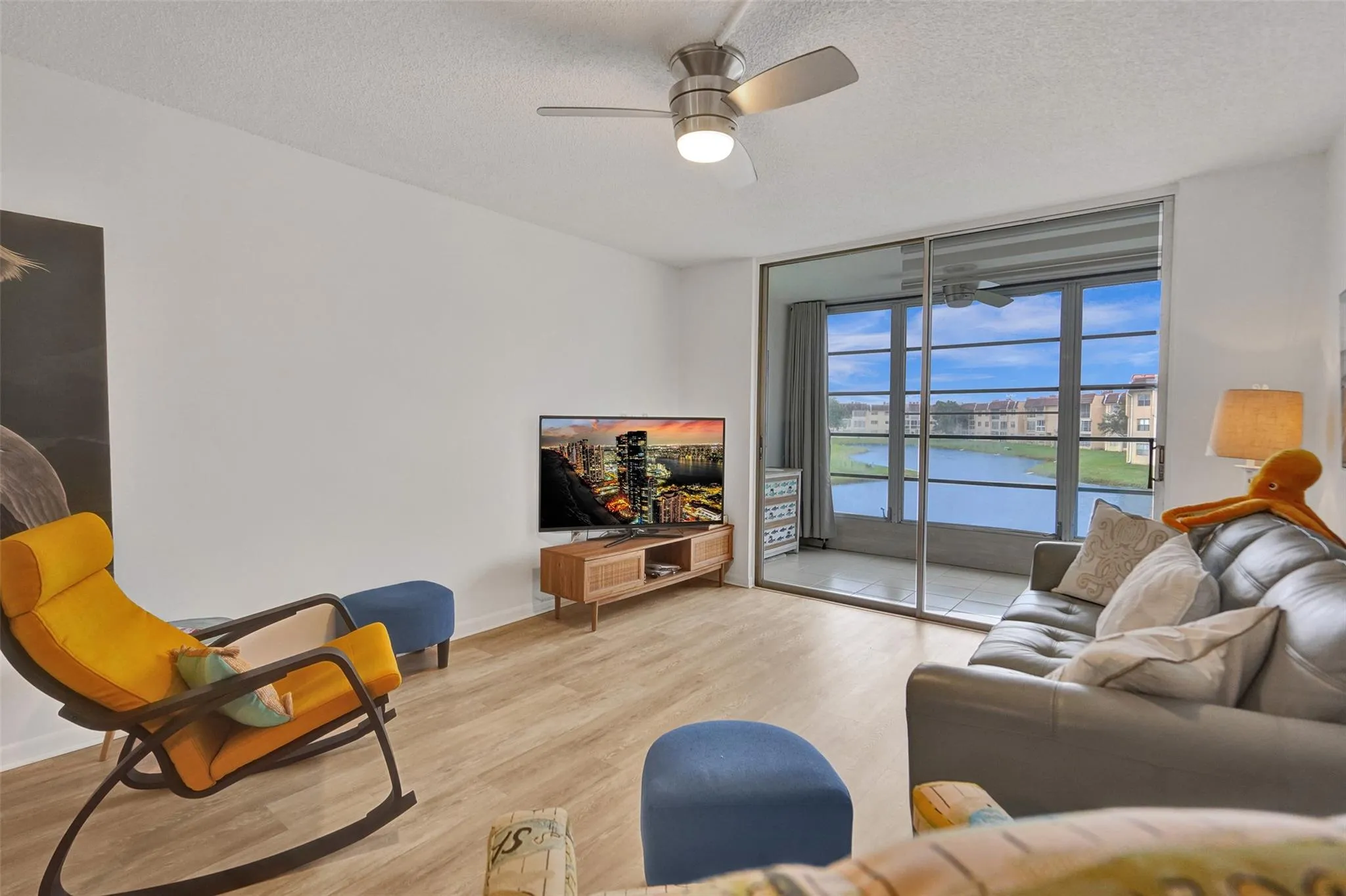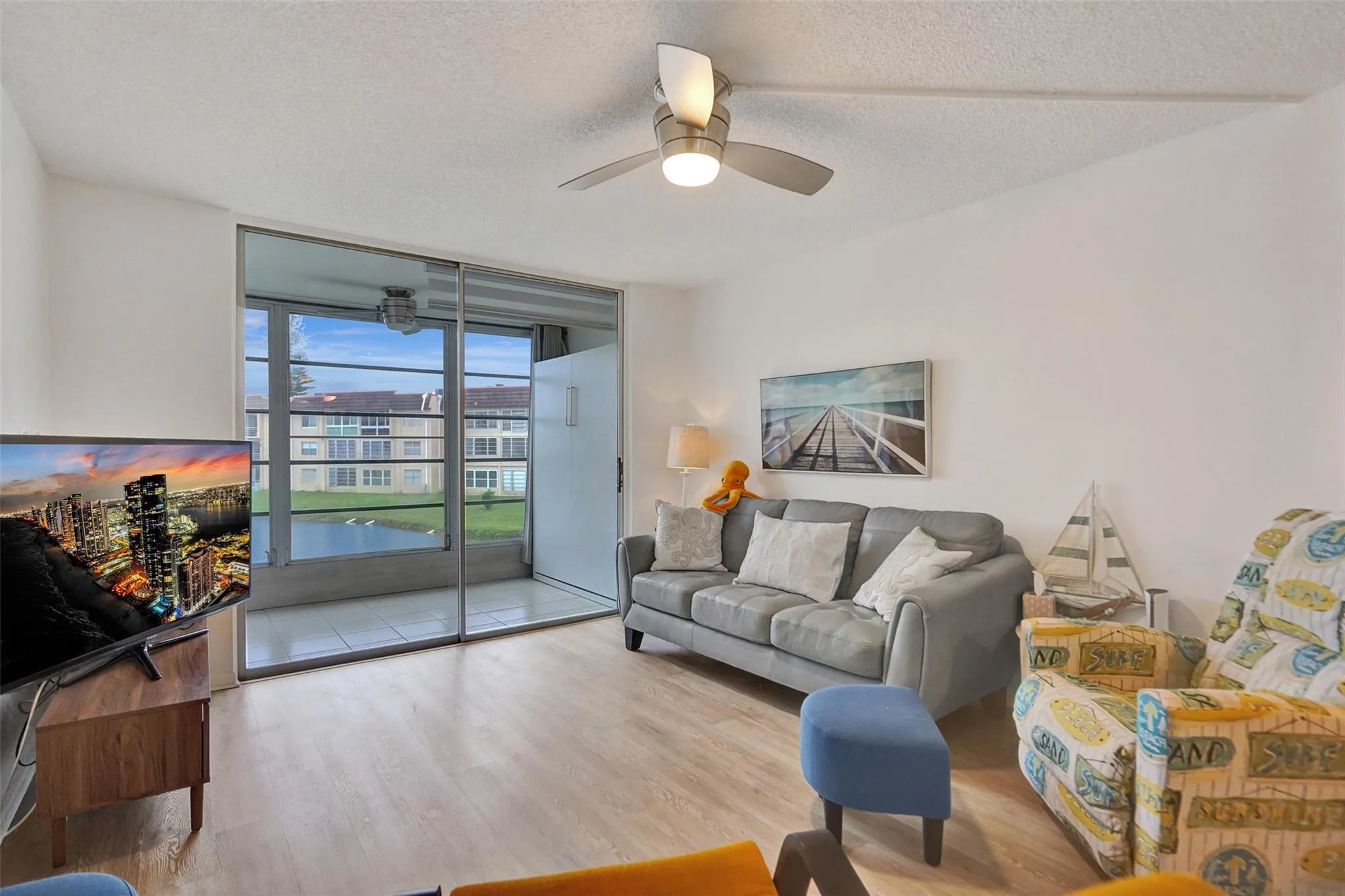 PRICE REDUCED… Discover your dream home in Sunrise Lakes. This beautifully updated unit features 1 bedroom and 1 bathroom, with stunning lake views. Highlights of this home include an updated kitchen and bathroom, stainless steel appliances, laminate and ceramic tile flooring, and an enclosed patio. Murphy bed on enclosed patio is the perfect place for guests. Internet and cable are included in the monthly fee. This unit comes fully furnished, making it move-in ready. See this incredibly well-kept unit with the best lake view in the community today.