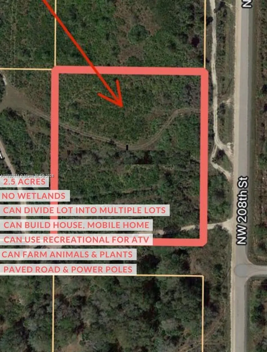 Take advantage of this 2.5-acre opportunity in Viking Estates to building your dream home! —no HOA! Located on a well-developed road, this high and dry lot shows no wetlands according to the National Wetlands Mapper. Mobile homes are permitted, and A-1 zoning allows for livestock, making it ideal for a small farm. Power poles run along the front, and the land is perfect for recreational activities like camping and riding ATVs, with ample space for equipment storage. The lot can also be divided into multiple parcels, appealing to investors. Okeechobee is rapidly developing into a major town in South Florida, so now is the time to buy at affordable prices. Boundary and site surveys are available.