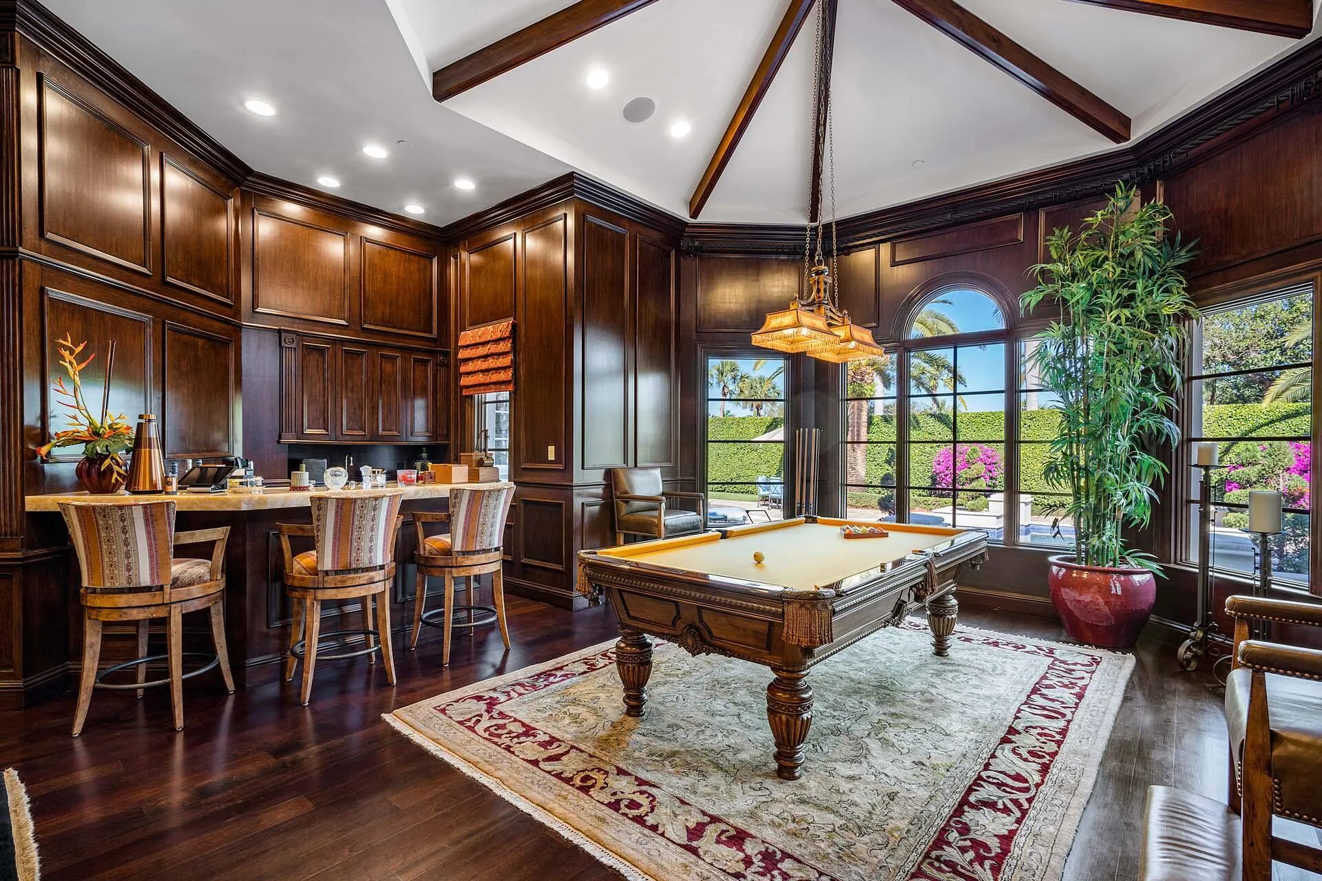 An extraordinary opportunity to own nearly an acre of prime golf course frontage in RPYCC, boasting an impressive 189 feet along the 9th and 18th fairways. 1869 Sabal Palm Drive is a distinguished five-bedroom estate designed for those who appreciate grand-scale living and resort-style amenities. A private, gated motor court welcomes you to this expansive residence, where refined interiors and exceptional outdoor spaces create an unparalleled lifestyle.