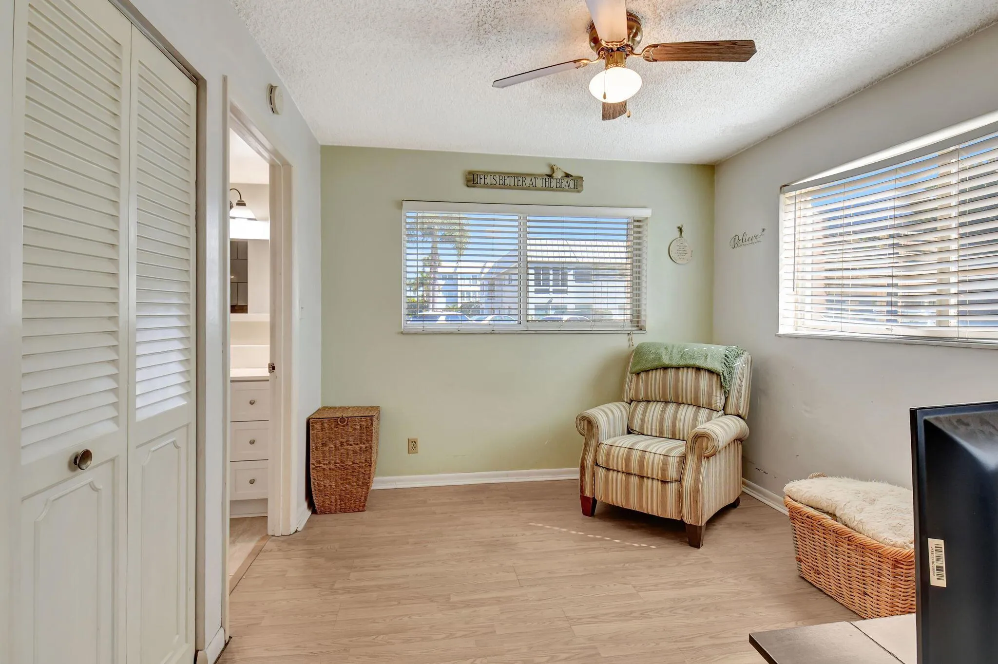 Bring your vision to life in this 1st floor, end corner unit located in the highly desirable Colonial Club, a vibrant 55+ community in Boynton Beach. Enjoy peace of mind with full hurricane impact windows and sliders, a designated parking spot conveniently located just outside the back sliders, and newly installed roofs on all buildings within the community. While a shared laundry room is available in the building, washer and dryers are allowed in the units if you wanted to install one.