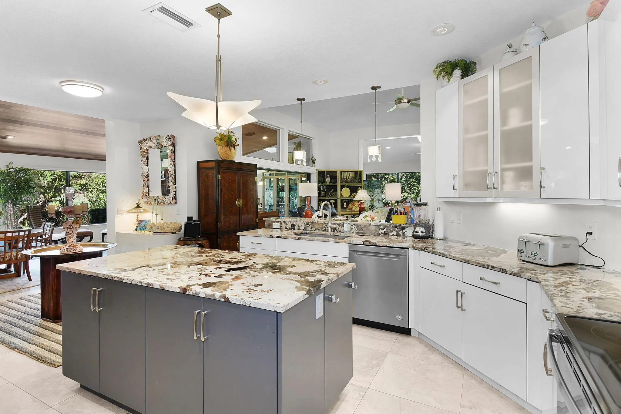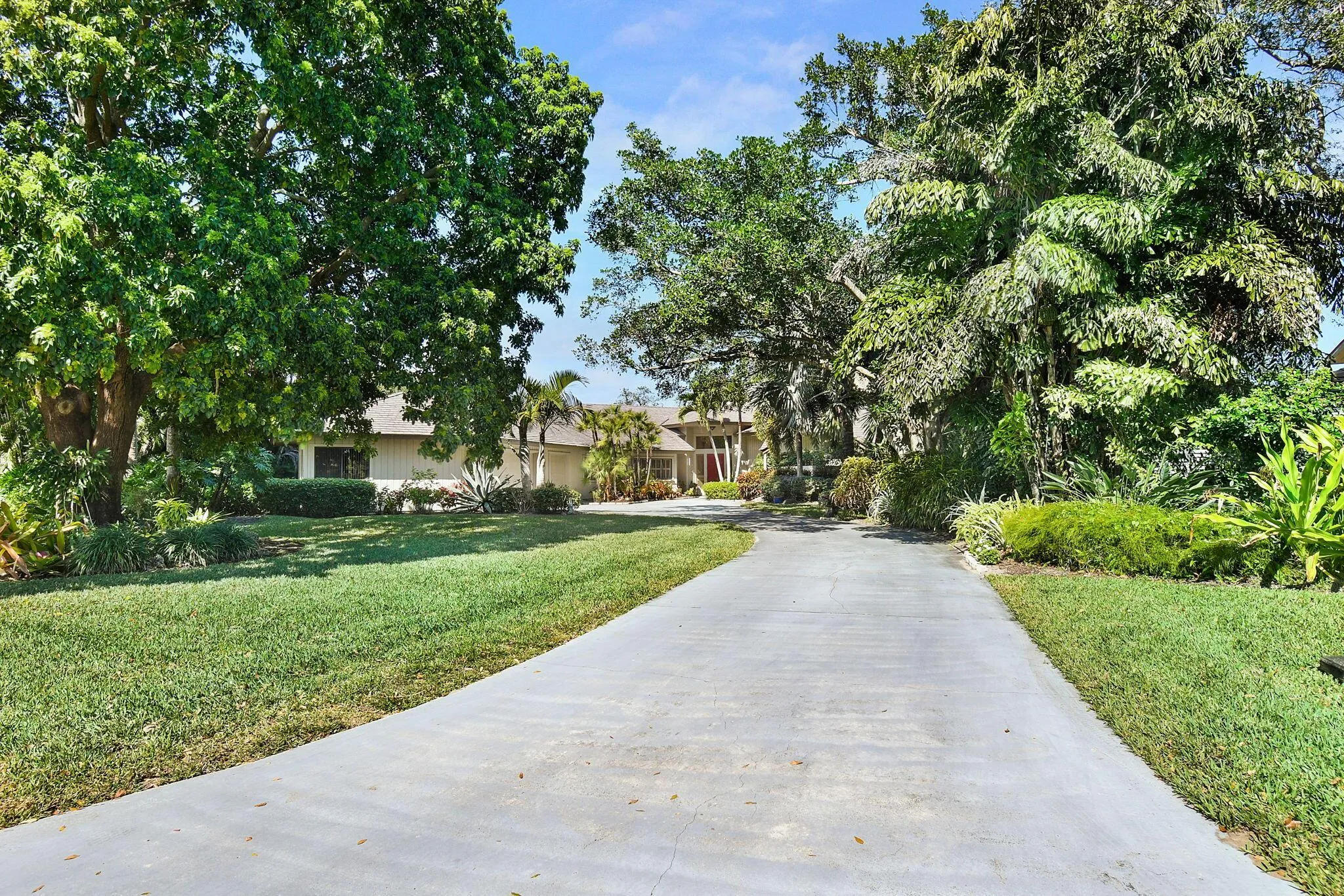 This 4 bedroom 3.5 bath home offers an expansive living space with vaulted ceilings. The recently remodeled kitchen has gorgeous granite countertops, stainless steel appliances, a large pantry & wine fridge that would please any chef. The Florida Room with wood ceilings overlooks a garden that could be easily turned into an inviting pool area. The large primary bedroom includes a sitting area & 2 walk-in closets. The massive primary bathroom has 2 vanities, step-in shower and soak tub. The Music & Recreation rooms at the rear of the home offer panoramic views of the Blue Course 14th fairway through impact glass picture windows. On the other side of the home are 3 bedrooms and 2 bathrooms. The home sits on a high & dry .58 acre lot. Garage doors replaced in 2025.