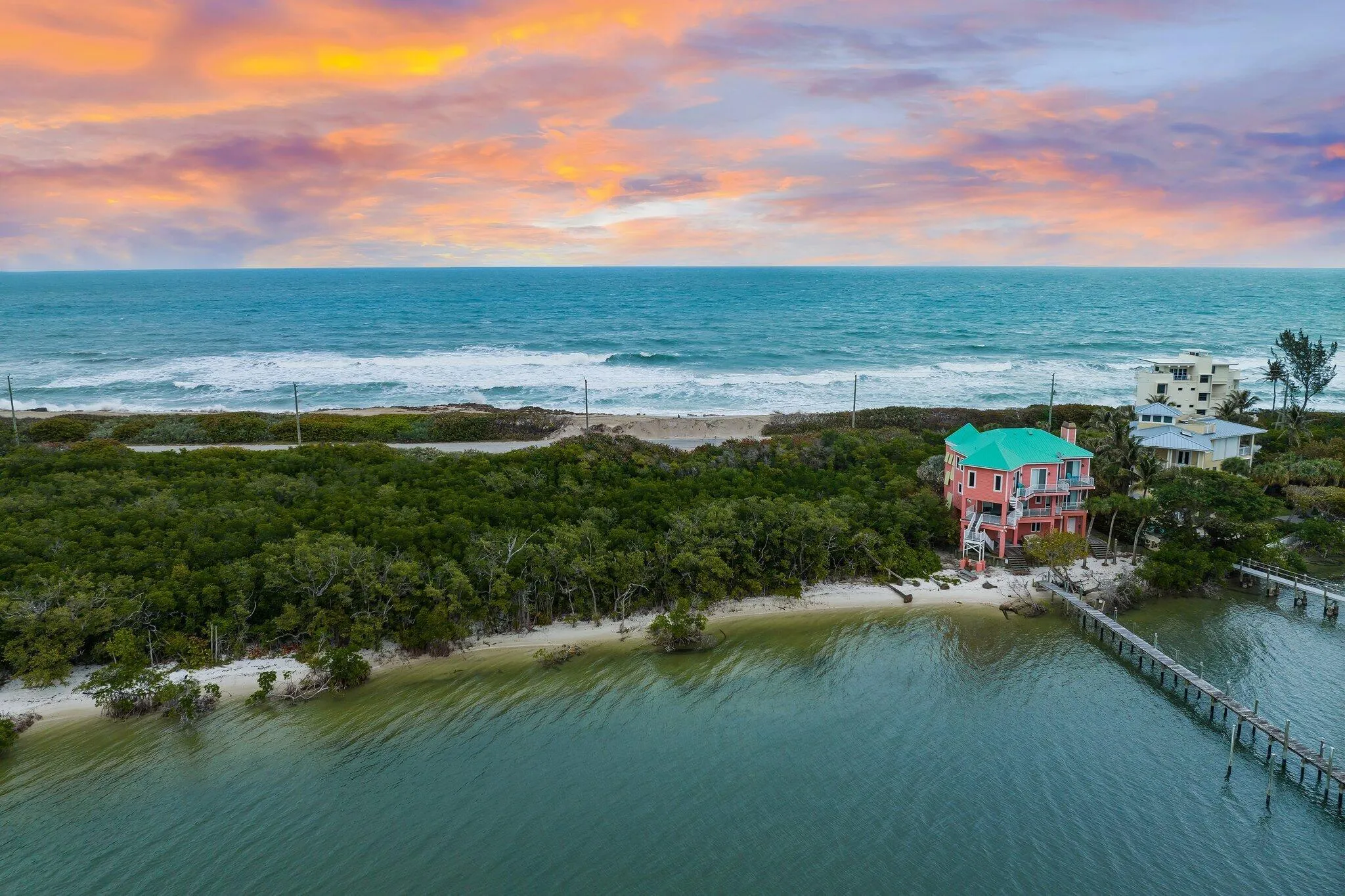 Spanning over an acre, this exceptional property offers approximately 275 feet of combined water frontage, stretching from ocean to river. Whether you prefer to watch the sunrise over the Atlantic or the sunset over the river, this is the ideal location for experiencing breathtaking views from every angle.South Hutchinson is renowned for its classic old Florida charm, offering a unique and peaceful retreat within South Florida.Whether you seek a private beachfront escape or a quick boat ride to the open ocean, this property provides the perfect setting for those who value tranquility, natural beauty, and coastal living at its finest.