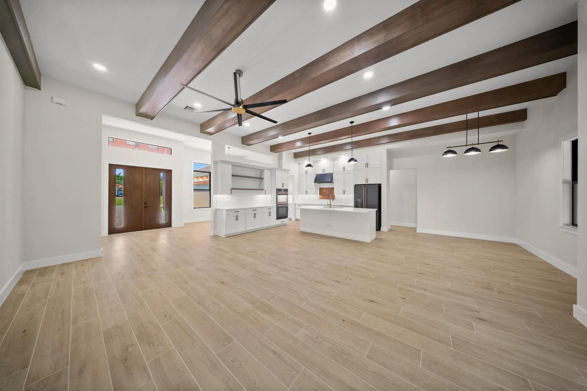 This is the only home of its kind, a custom, never-before-built design in the gated community of Rivella, set on a premium corner lot with preserve views. Inside, you’ll find 12′ ceilings, exposed beams, and triple impact sliders leading to a covered lanai with outdoor kitchen and fireplace. The chef’s kitchen includes quartz counters, custom cabinetry, and a walk-through butler’s pantry. The primary suite offers a freestanding tub, oversized shower, and full privacy. Enjoy walkable access to the clubhouse, pool, and tennis. Located near Jensen Beach, downtown Stuart, botanical gardens, and upscale shopping. No closing costs with preferred lender. Optional Paint Color TBA by HOA