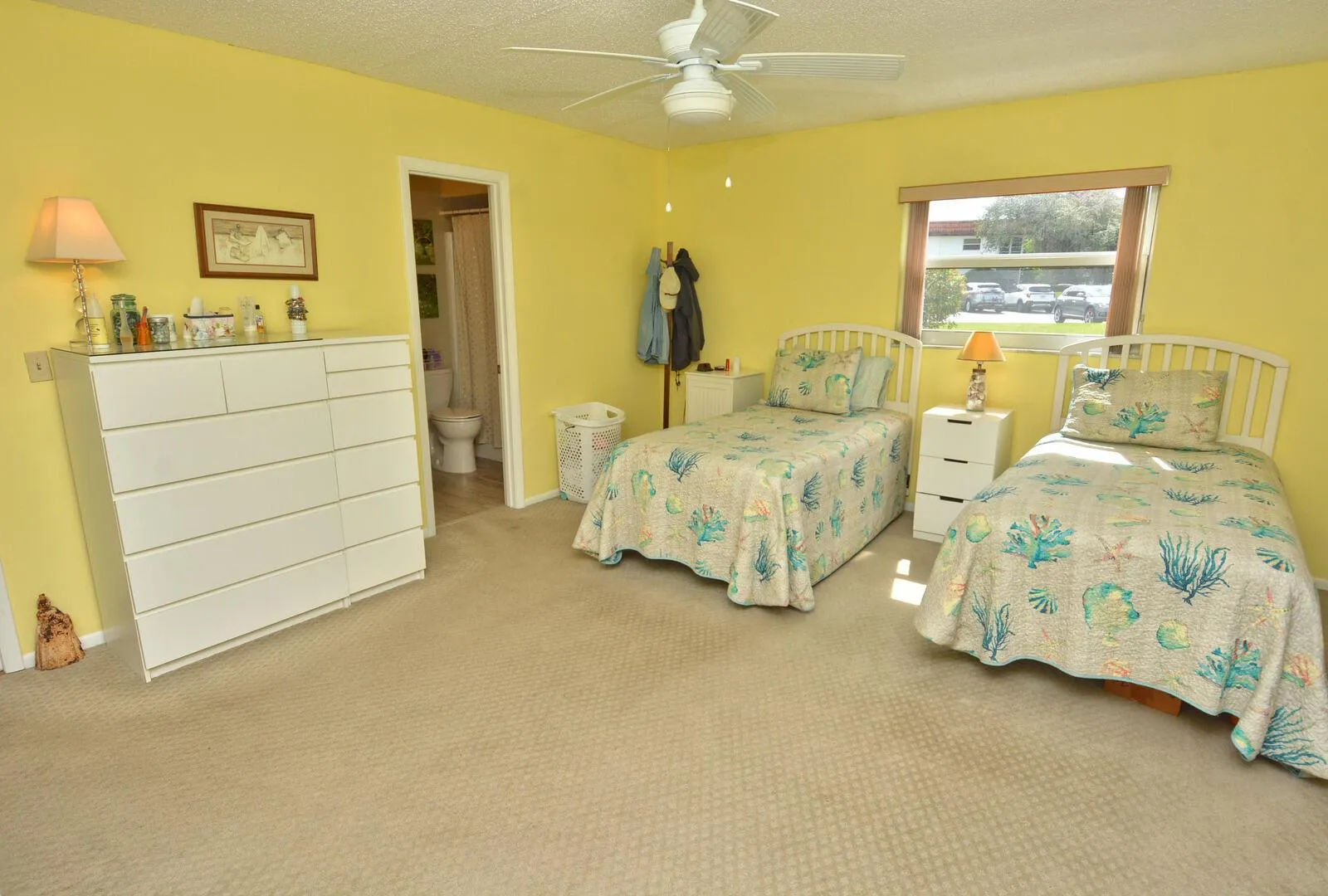 Step into this cozy, beachy-theamed condo and you won’t want to leave! Make this one very large bedroom with it’s full wall of closets and private full ensuite yours today. You have everything you need to be comfortable with this first floor corner location and extra half bath for guests. Updated features include flooring throughout, fully updated kitchen, Corian counters and appliances, A/C and HWH too. The glass Florida room is the full width of the condo and has a walk-in closet for extra storage. Not to mention the gorgeous view of the lake and fountain from your living room. This is an Active 55+ community in the Stuart/Jensen Beach area. Adjacent to North River Shores public golf course. Convenient location close to Treasure Coast Mall, not to mention the gorgeous view of the lake