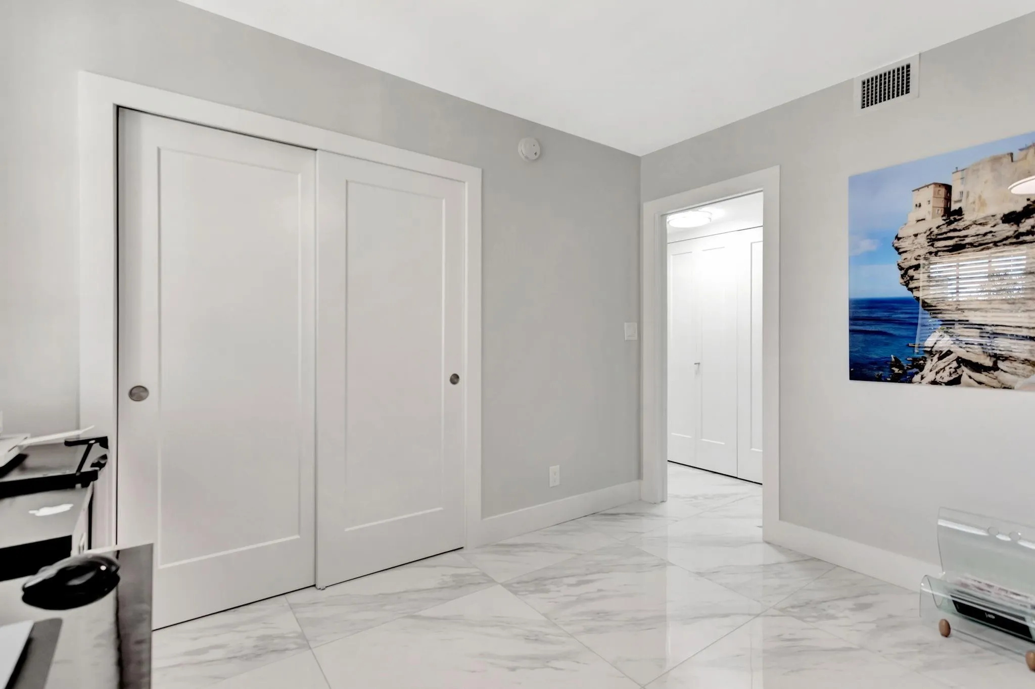 SLEEK & MODERN ONE OF A KIND DESIGN W/ ATTENTION TO DETAIL! THIS SPECTACULAR UNIT IS FULLY PROTECTED W/ IMPACT WINDOWS & DOORS! NEW ELECTRIC BOX! AESTHETIC CEILING DESIGN W/ SOFFITED LIGHTS IN KITCHEN & LIVINGROOM. 33″ DAZZLING TILES FLOW THROUGHOUT CAPTURING LIGHT! KITCHEN HAS ABUNDANT WORK SPACE, QUARTZ COUNTERS, TILED BACKSPLASH, HIGH-END CABINETS, EXTRA LARGE PANTRY & SS APPLIANCES. CUSTOM MASTER BATH W/ OVER-SIZED WALK-IN SHOWER PLUS FULL GUEST BATH W/2ND SHOWER! ALL DOORS & MOLDINGS UPGRADED. CUSTOM WALK-IN HIS & HER CLOSETS. AIRY PATIO HAS PRIVACY WALLS AND GOLF VIEW ! WALK TO CLUBHOUSE, 2 POOLS, BBQ AREA & KITCHEN FACILITES. ENJOY TENNIS, PICKLEBALL & BASKETBALL. CONDO FEE INCLUDES CABLE, INTERNET, WATER & TRASH REMOVAL. W/D IN UNIT. CLOSE TO SHOPPING, GREAT EATERIES & THE BEACH