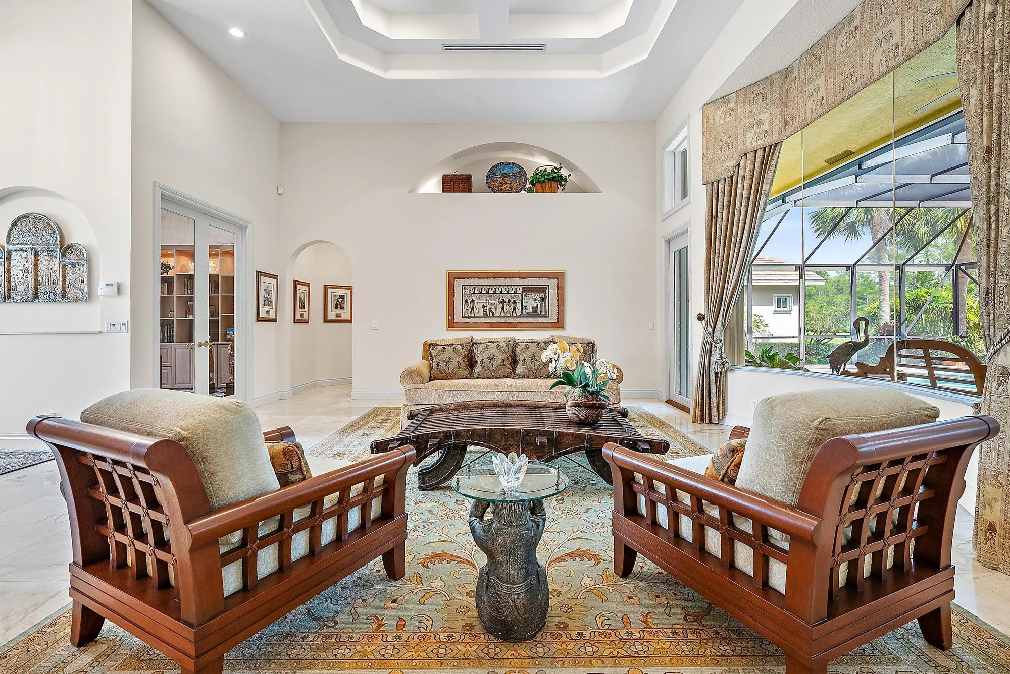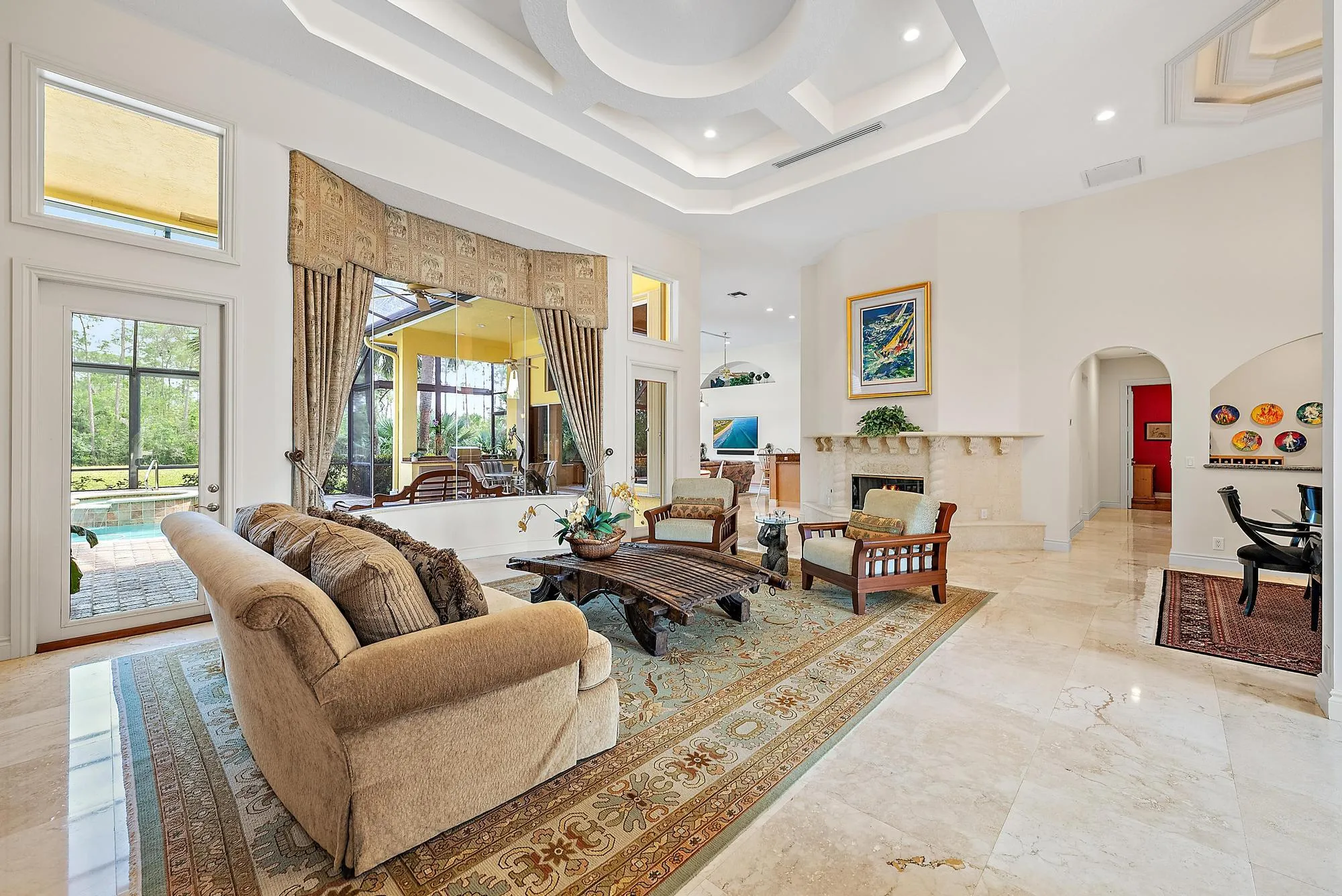 With 110 Feet of Preserve and Water Frontage, this exceptionally built and immaculately maintained 4BR/4BA+Den Estate offers unsurpassed privacy and tranquility within the world-class Club at Ibis. Custom built by Arch Enterprises, this estate boasts a 2025 ROOF, whole-house 40,000 Watt Generator, and state-of-the-art hurricane protection–Rolladen Accordian shutters and electric roll-down shutters in the front. Featuring premium, creamy 24×24” marble flooring in the main living areas, and 2024-installed wood flooring in three bedrooms, this home exudes a timeless and elegant aesthetic throughout. This unique and versatile floor plan offers a dedicated wine room, a beautiful gas fireplace in the living room, and a handsome wood-paneled library.