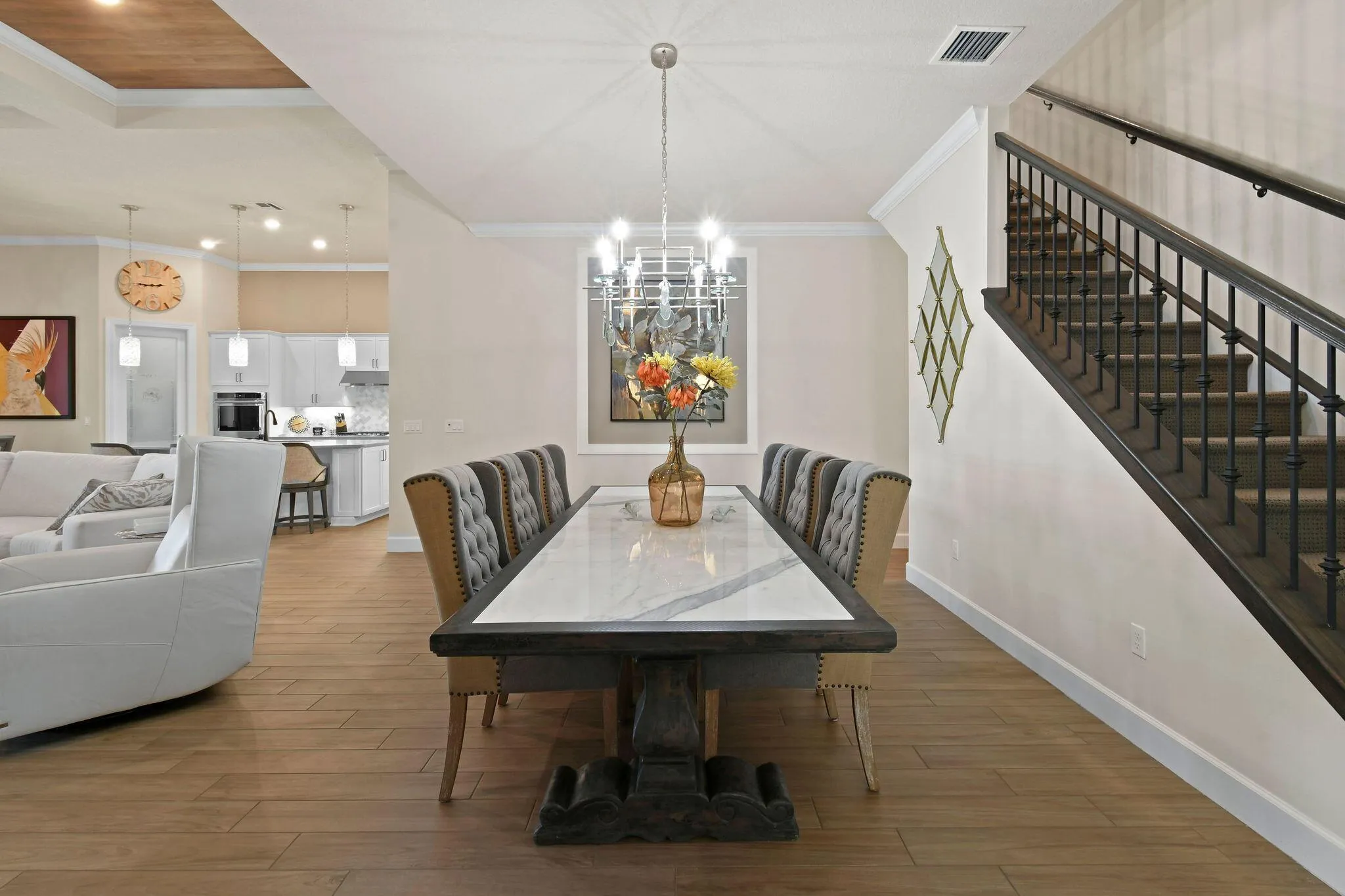 This stunning Stonewater Model in Sonoma Isles offers 4 Bedrooms, 4.5 baths, a private den/office, and a spacious loft with wet bar, offering the ideal layout for both relaxation and entertainment. Enjoy peaceful lake views from your premium lot, along with a new custom screened-in pool with waterfall and cabana bath for year-round living. The open floor plan has upgrade tile flooring on the first level, and plush carpeting in the loft area. The gourmet kitchen features quartz countertops, tile backsplashes, stainless appliances and high-end finishes. There are Impact windows and doors and a house generator. The master suite, office and 2 guest bedrooms are on the 1st floor, while the 4th guest bedroom suite with bath is tucked away off the loft. A 3-car garage provides ample storage.