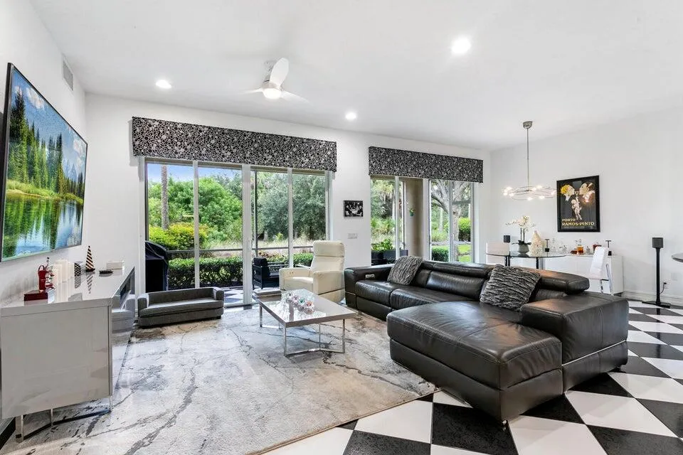 THIS IS IT! Stunning Contemporary TURNKEY FURNISHED 3BD/2BA/2 Car Garage w/epoxy floor and 240v connection. Choose any level membership. Impact windows/doors. Loads of upgrades. Open great room floor plan. Porcelain tiles throughout. Chefs light and bright dream kitchen w/white cabinetry, granite countertops and backsplash and new appliances. Large primary suite w/walk in closets. Primary bath boasts floor to ceiling white subway tile shower w/seamless glass shower doors, dual sinks, smart toilet and separate tub. Large screened patio w/new summer kitchen. Expansive tropical preserve views. Loads of privacy. Quiet location. New AC w/UV lights and smart thermostat. Lutron smart light Front loading washer/dryer w/separate pedestal. Loads of cabinetry in laundry room. Sonos HD TVs.