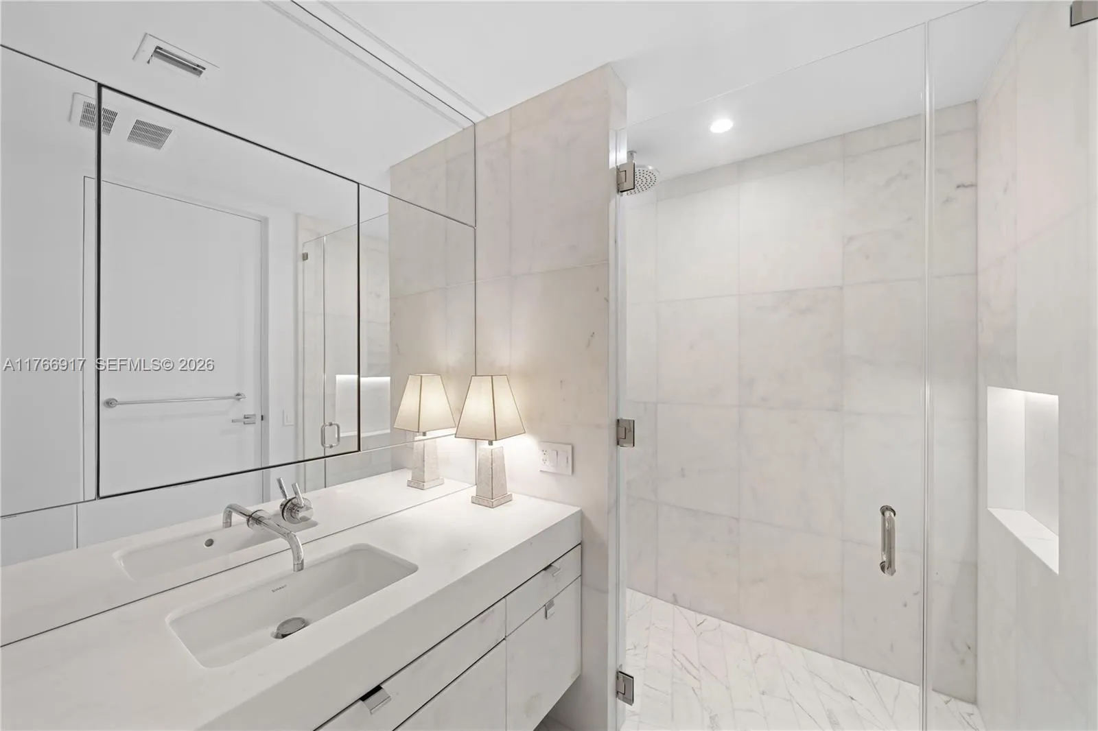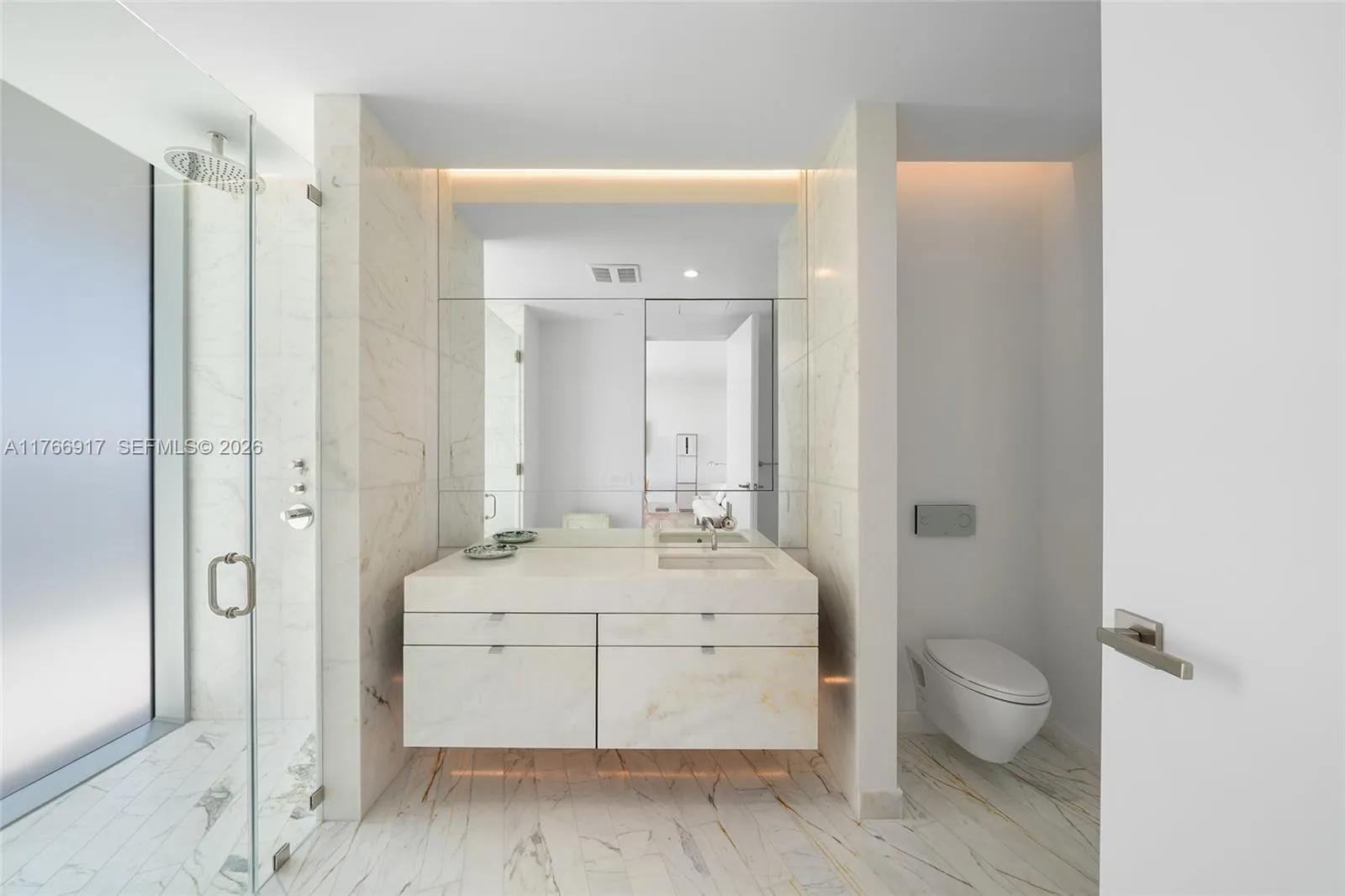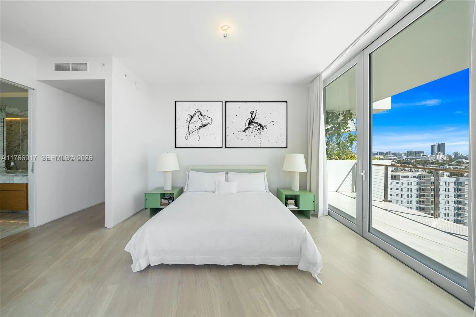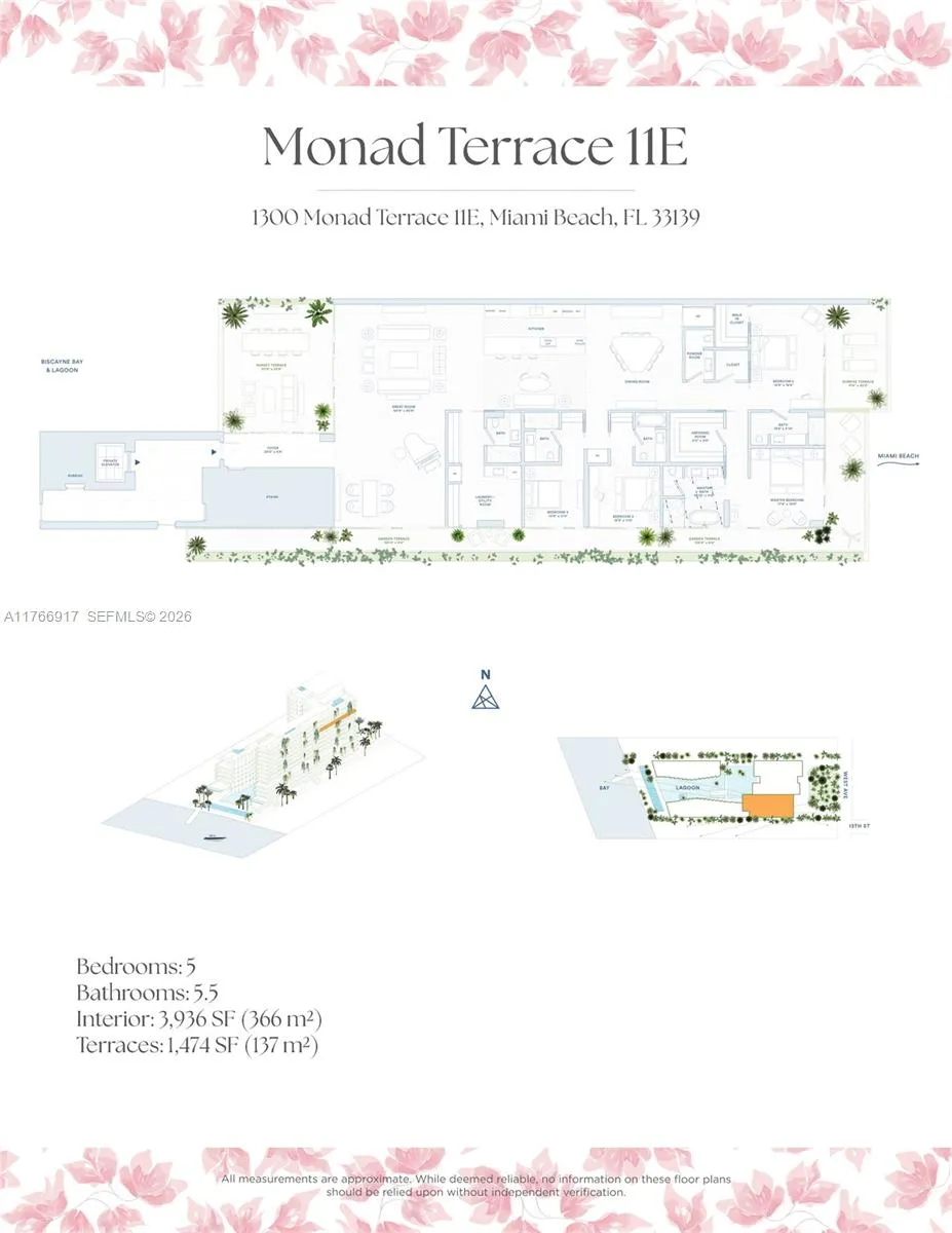 MID-CENTURY MINIMALIST INTERIORS BY AUSTIN HARRELSON WITH STUNNING SUNSET VIEWS OVER THE BAY & CITY SKYLINE FROM THIS SPRAWLING 5-BEDROOM RESIDENCE AT MONAD TERRACE BY AWARD-WINNING ARCHITECT JEAN NOUVEL! Flowthru 5 Bed + 5.5 Bath Residence in 3,936 SF wrapped in 1,474 SF Terraces. Private Foyer greets you to Oversized Great Room. Custom Wall-to-Wall Bookcases + 10 FT Ceilings in Elegant Venetian Plaster. Poliform Kitchen in White Calacatta Gold Marble w/Sculptural Cantilevered Marble Island & Wine Rack + Gaggenau Appliances. Custom Oak Breakfast Banquet. Primary Suite w/Bathroom in Calacatta Gold Marble & Floating Wood Vanity + Steam Shower & Ago Soaking Tub by Antonio Lupi. Laundry Room Doubles as Service Quarters. Diagonal Teakwood floors. Private Elevator with Direct Access to Garage.