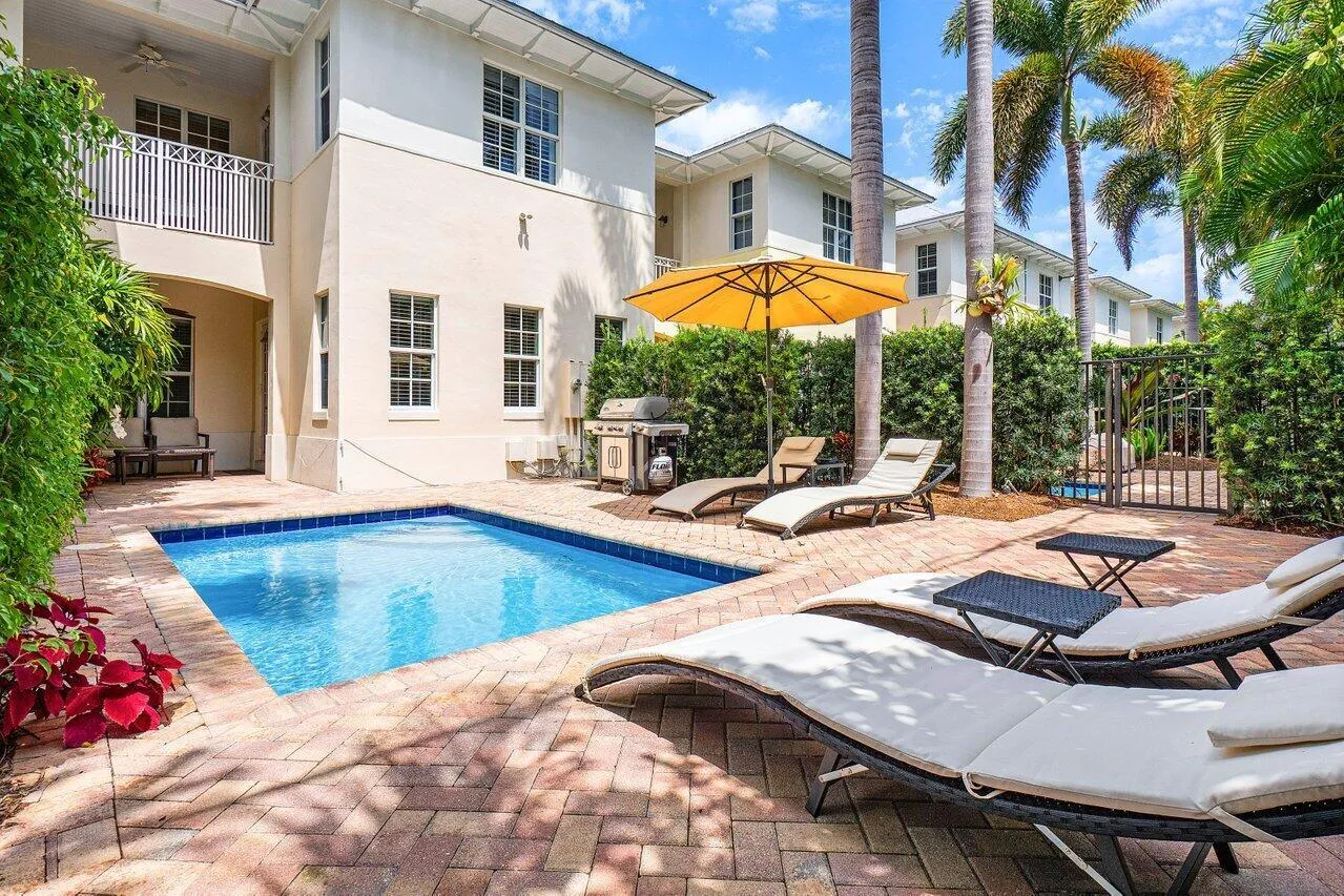 Experience the ultimate in luxury living with this Fully Furnished Seasonal rental in a stunning British West Indies-inspired townhome. Formerly a designer model, this home is beautifully furnished and ready for immediate enjoyment. Relax in the private courtyard with a lushly landscaped patio and dipping pool, just a short walk to the beach and Mizner Park, a vibrant, Mediterranean-inspired, open-air destination offering upscale shopping, dining, and cultural experiences in the heart of Boca Raton.This elegant retreat features 10ft ceilings, crown molding, marble and wood floors, custom cabinetry, French doors, impact windows, and a security system. Ideally located in the heart of Boca Raton, near world-class shopping, dining, world-class golf courses and the exclusive