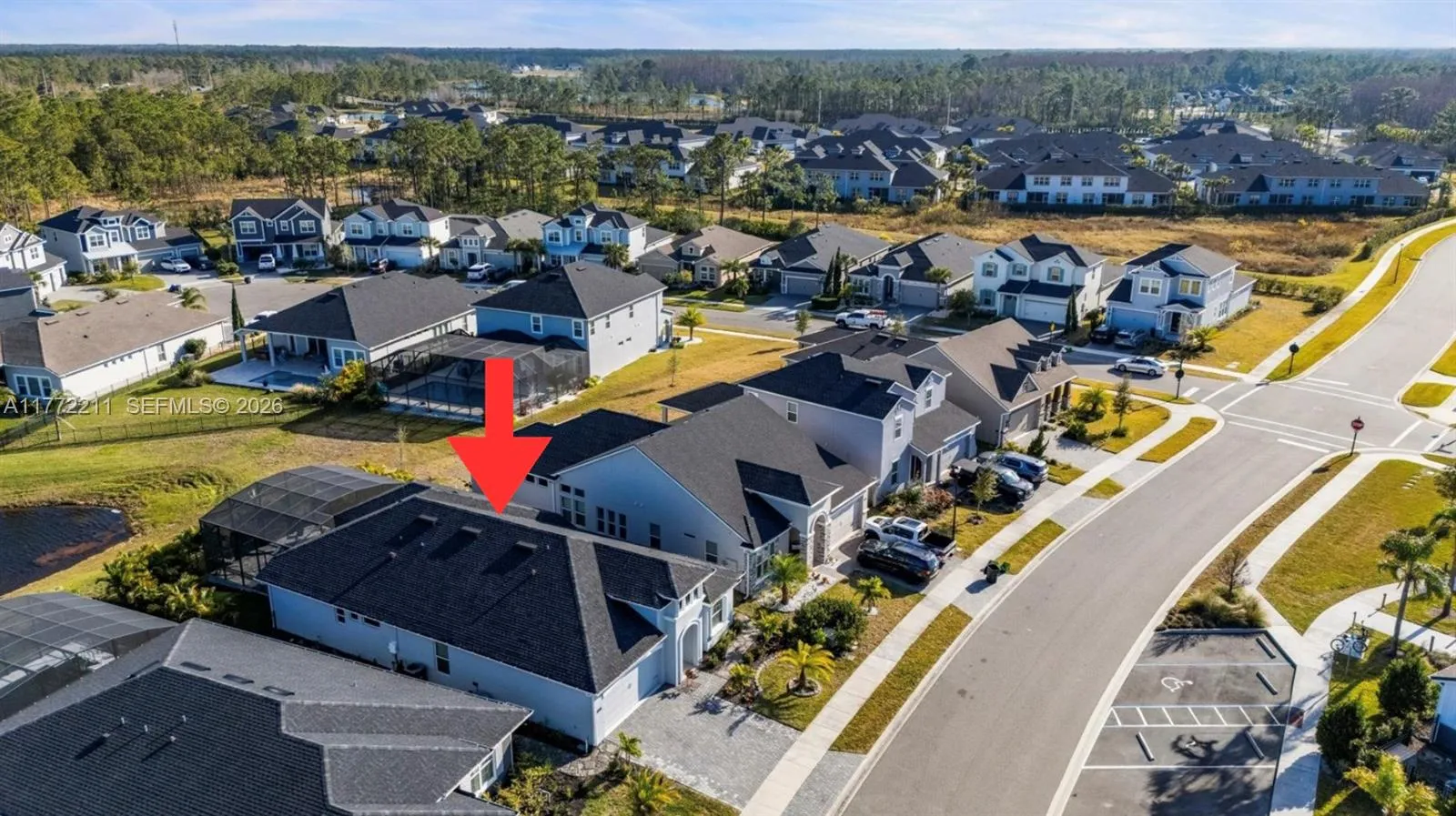 Welcome Home! This stunning 4BD/3BA + flex room, built in 2022, has 2,943 SqFt of luxurious total space. Situated on a pond, every detail has been upgraded w/ HIGH-END LUXURY FINISHES, including appliances and light fixtures. 2 car garage, enlarged paver driveway, & upgraded landscaping for an impressive curb appeal. A true backyard oasis built for privacy, complete with a full screened SALTWATER & HEATED POOL, astroturf, Bahama shutters, new outdoor lights, and a fan. Perfect for relaxing or entertaining! Inside, you’ll find custom blinds, window tinting, and a custom-built foyer. Features a whole-house water filter and softener system, a scent system, upgraded tech-level WiFi & cameras, and SO MUCH MORE!
