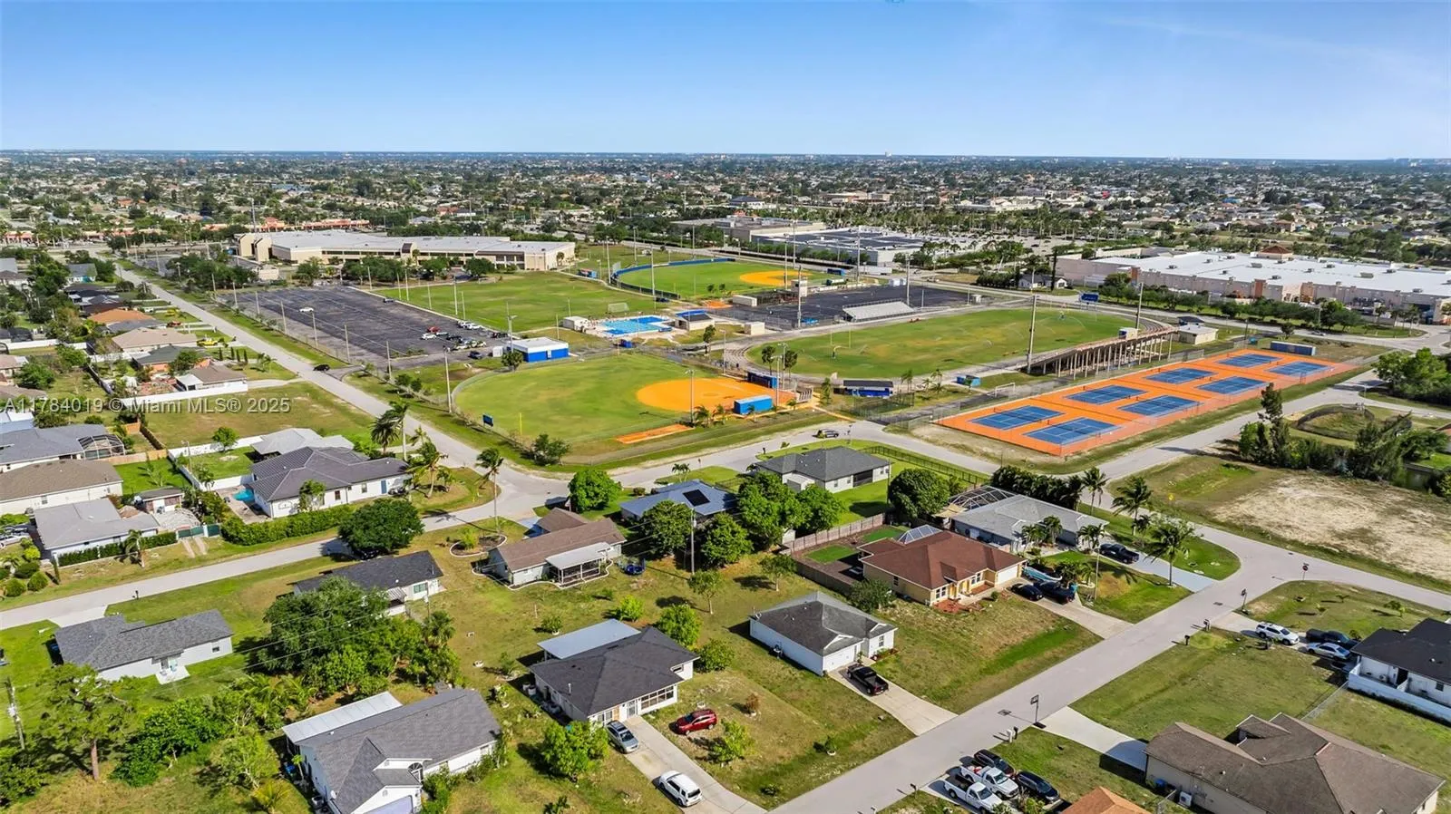 NO FLOOD ZONE – CITY WATER ASSESSMENT ONLY $2,300 (PAID BY BUILDER!)rnrnStunning new construction 3 BR + Den / 3 BA / 3-Car Garage. Den can serve as 4th BR, office, or playroom. All-tile flooring. East-facing front, west-facing back for gorgeous sunsets.rnrnFeatures include:rnrnHigh ceilings & open layoutrnrnModern kitchen w/ quartz counters, backsplash, built-in oven & microwavernrnWalk-in pantry w/ built-ins + spacious laundryrnrnPrimary suite w/ double shower, soaking tub, dual vanities & his/her custom closetsrnrnExtended paver pool deck w/ outdoor cooking arearnrnPrime location near Veterans Pkwy & Santa Barbara Blvd (close to Lowe’s, Target, Publix). CO Ready!