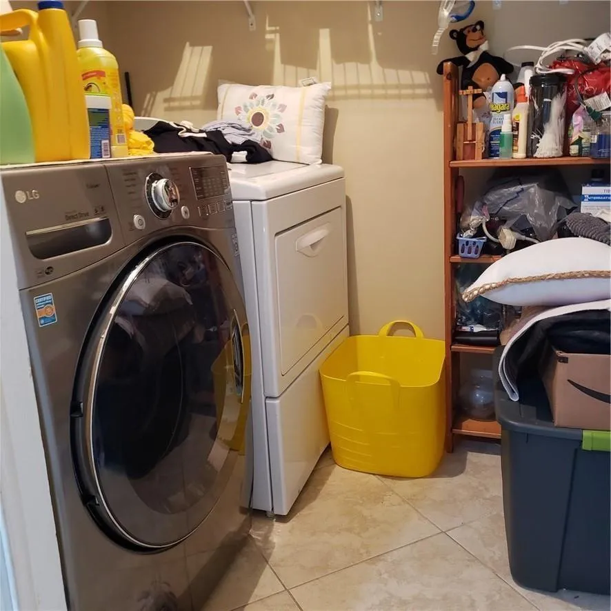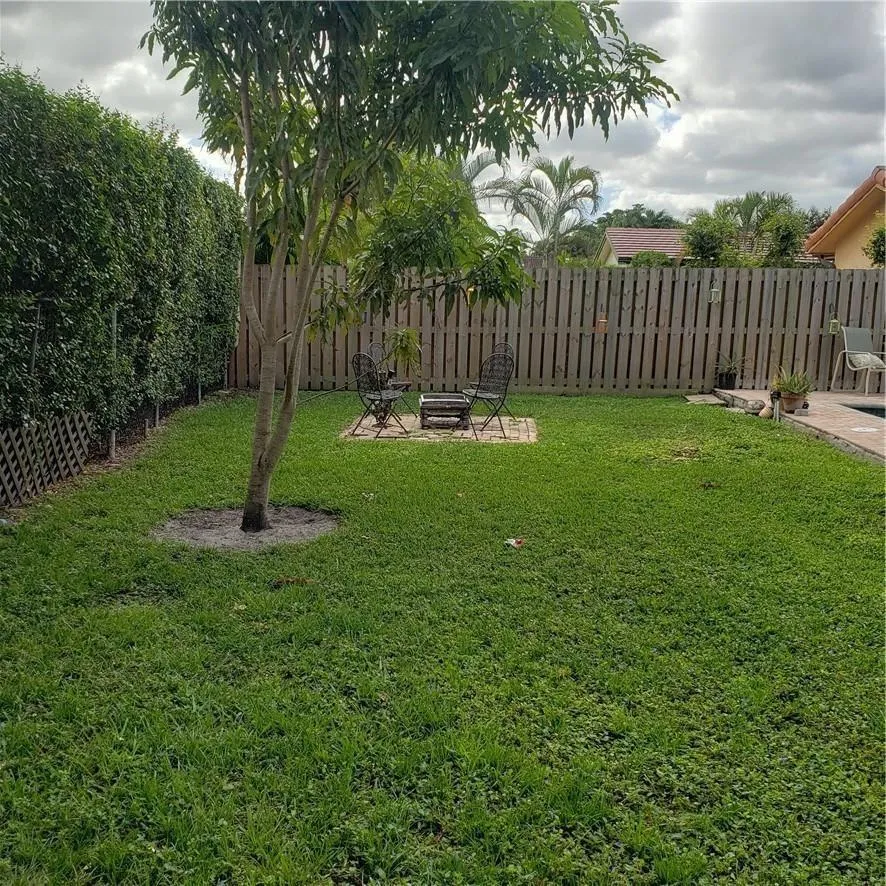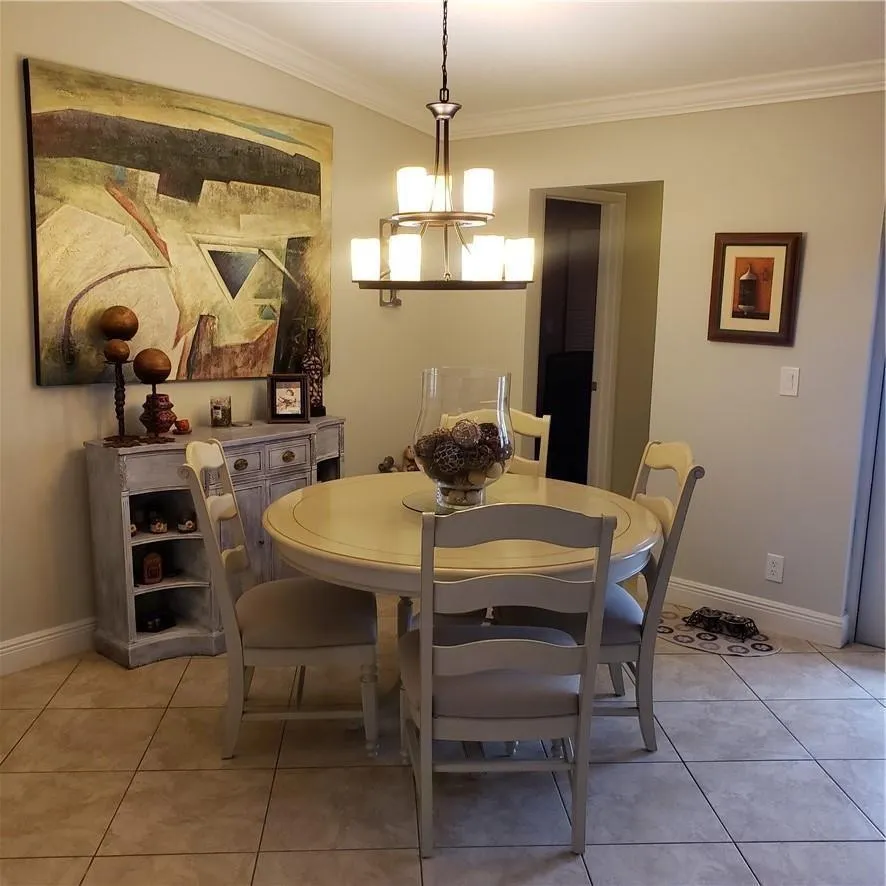 Beautiful home features a kitchen with newer (2019) stainless steel appliances, quartz countertops & center island, lazy Suzanne, pantry w/pull out shelves, and cabinets with crown molding. The oven & microwave can be operated through your phone. Dining area & 1/2 bath off the kitchen. The kitchen opens to the family room which has a vaulted ceiling. Diagonal tile throughout except for wood-like tile in bedrooms. The garage was converted to a large living room with a separate laundry room. Fenced yard with inground pool. Covered paver patio with ceiling fan. Remodeled bathrooms. Ceiling fans in all bedrooms. Master bedroom w/walk in closet. Newer roof. Great house! Don’t miss it!