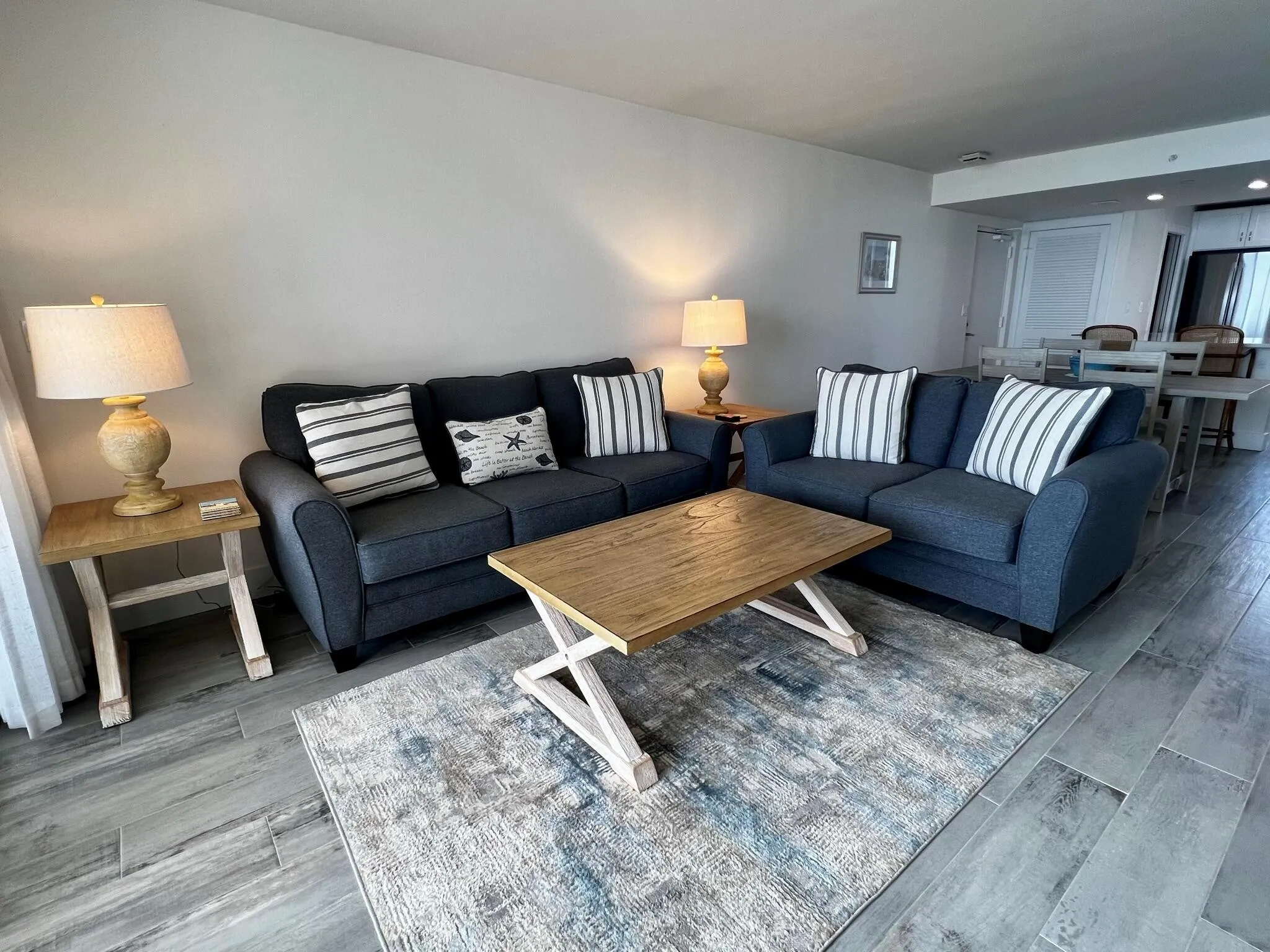 Direct oceanfront 2 bed, 2 bath furnished condo in Ocean Trail has an unobstructed East ocean view. This 5th floor END UNIT was COMPLETELY RENOVATED in 2022. All new kitchen features new appliances and sleek quartz counters. Porcelain tile throughout. Fresh new bathrooms. Larger oceanfront balcony welcomes outdoor dining and relaxation. King main bedroom with twin beds in the guest room. Clean, tidy, and well maintained. 24 hour gated entrance, 9 tennis courts with seasonal onsite pro, heated pools, spa, sauna, grilling station, fitness room, seasonal social activities, secure under building parking, and of course direct beach access.