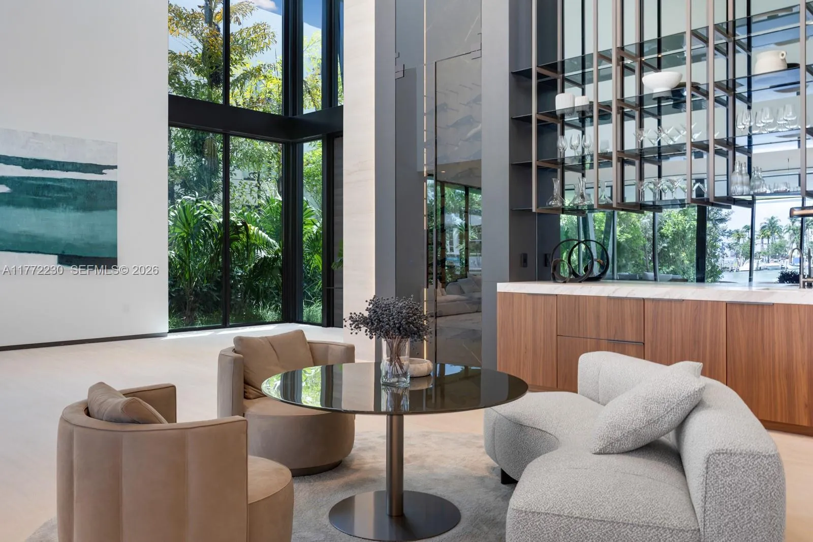 Masterfully designed by SDH_Studio, developed by Groupe Dayan & built by Treo Construction in 2025, this architectural masterpiece spans 7,000 sqft, with 7 beds and 7+ baths, of luxury. Minotti furnishings define its contemporary elegance, where sculpted architecture plays with light and shadow. Soaring ceilings, a striking floating staircase, and voluminous spaces create grandeur. A floor-to-ceiling wine cellar with integrated bar reinforces the home’s scale. Stone accents elevate the interiors, notably in the kitchen, where a stunning island is paired with top-tier appliances. Custom millwork, walnut paneling, and bespoke lighting add warmth and refinement. Outside awaits a waterfront oasis with pool, outdoor kitchen, and 78 ft of waterfront with a new private dock.