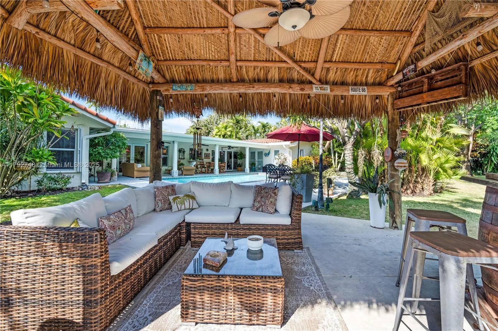 Welcome to your dream home in Pinecrest! This beautifully renovated 5-bed/3-bath residence offers the perfect blend of modern comfort and timeless style. Upon entering, you’re greeted by an expansive family room with serene views of the pool and backyard area. The heart of the home is the stunning kitchen, completely remodeled in 2022 and equipped with Bosch stainless steel appliances, custom shaker wood cabinetry, and sleek quartz countertops. The split-bedroom layout offers a private primary suite and office, plus 3 beds and 2 baths on the opposite side. All PVC! Step outside to your own private oasis featuring a large covered patio, a sparkling pool, and a lush yard. The Chiki hut and fully equipped outdoor BBQ area offer a true resort-style experience, perfect for long summer days.