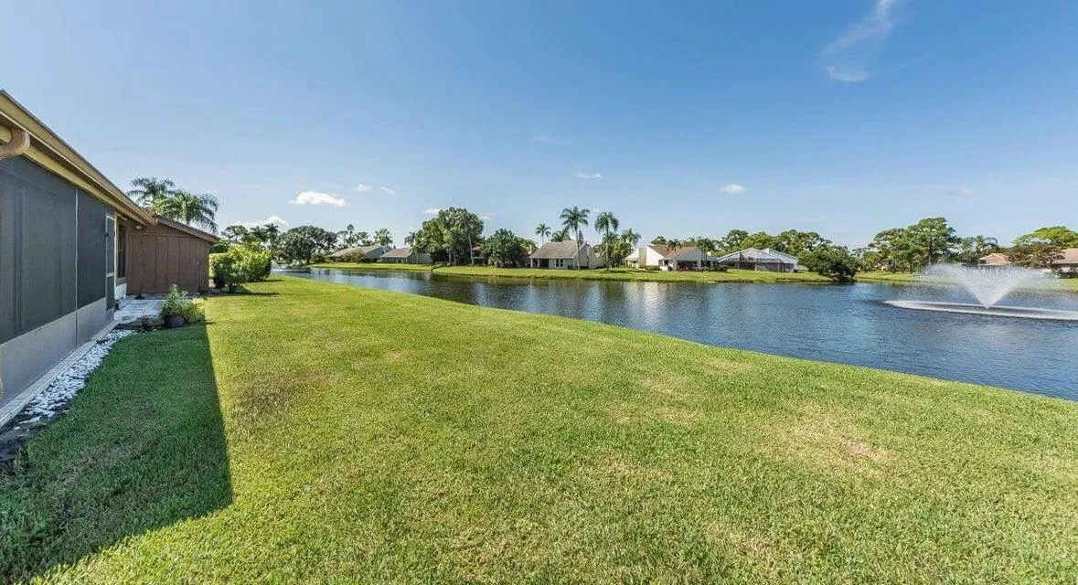 Welcome to Eastpointe Country Club Living! This beautifully remodeled 3/2/1 villa offers serene lake + fountain views from your spacious screened porch – complete w/ pull-down shutters for comfort + privacy. Step inside to discover open, airy floor plan featuring new wood-look vinyl floors, vaulted ceilings, kitchen w/ granite counters, a cook island + sleek stainless-steel appliances. The master suite boasts sliding barn doors + walk-in closet, while the home also includes a newer A/C, water heater + washer/dryer. here is even an attached golf cart shed. Community offers 2 Fazio-designed championship golf courses – residents enjoy 24/7 manned gated & ”The Pointe” clubhouse w/ resort-style pool, dining, gyms, tennis. Near top rated schools. Social mbmp avail to tenants for $1000 trans fe